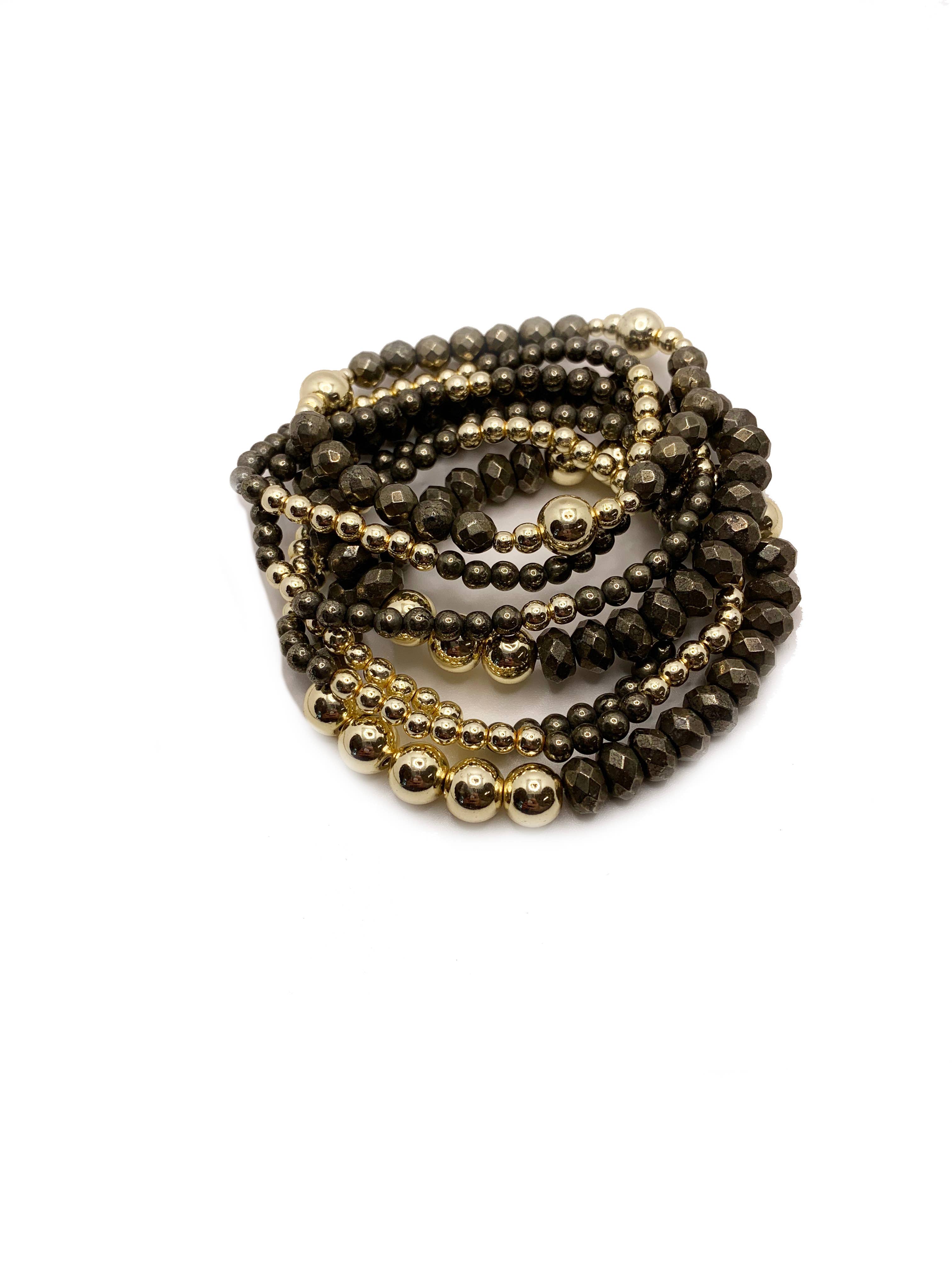 Pulseira de Contas de Hematite Dourada Esperança com Pérolas