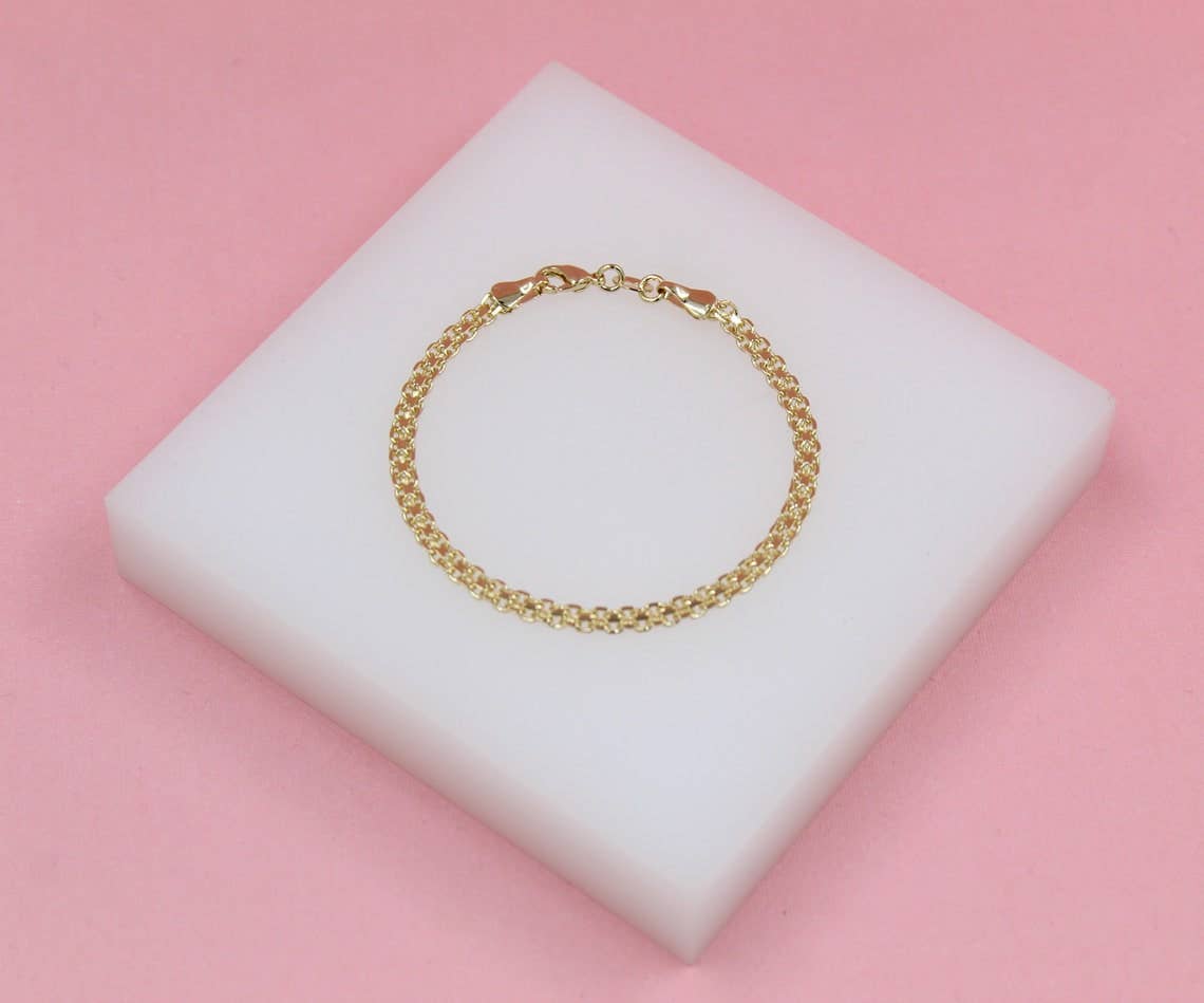 Bracelete em espinha de peixe dupla torcida de 3 mm preenchida com ouro 18K