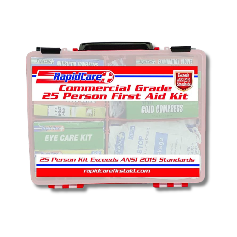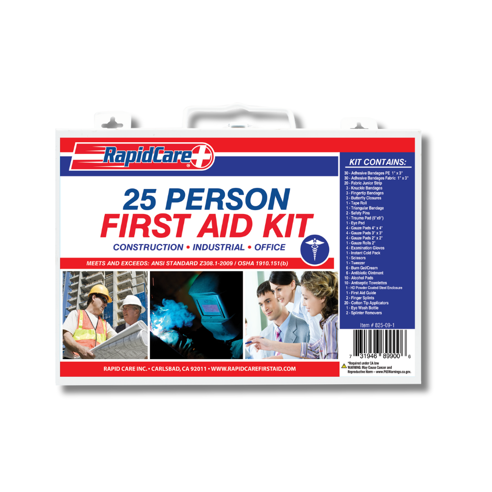 * 2 - Bandagem Adesiva 1" x 3" Tecido (50/caixa) * 1 - Bandagem Adesiva 3" x 3/4" Plástico (50/caixa) * 2 - Tecido de Bandagem Knuckle (40/box) * 1 - Tecido de Bandagem na Ponta dos Dedos (40/box) * 1 - Patch de tecido 2" x3" (25/caixa) * 2 - Rolo de fita impermeável (1/2" x 2,5 yds) * 1 - Bandagem Triangular * 2 - Compressa de Bandagem * 2 - Almofadas Antiaderentes (10/box) * 1 - Almofadas de Gaze 3 “x 3" (10/box) * 1 - Rolos de Gaze 2 “3” 4 “(1 cada um na mesma caixa) * 3 - Luvas de Exame (4/box) * 2 - Compressa Fria Instantânea Pequena 5" x 6" * 1 - Pinça de plástico * 2 - Splints Finger Splints (2 peças num saco) * 2 - Creme/Gel para Queimadura (10/caixa) * 2 - Pomada Antibiótica (10/caixa) * 3 - Almofadas de Álcool (10/box) * 2 - Toaletes Anti-sépticos (10/box) * 2 - Almofadas de alívio de picadas (10/box) * 2 - Almofadas de Iodo Povidona (10/box) * 1 - Aplicadores de Ponta de Algodão (100/saco) * 1 - 3" Bandagem Autoaderente * 1 - Lavagem para os olhos (Uso Único) (1pc 4oz OU 4pc.