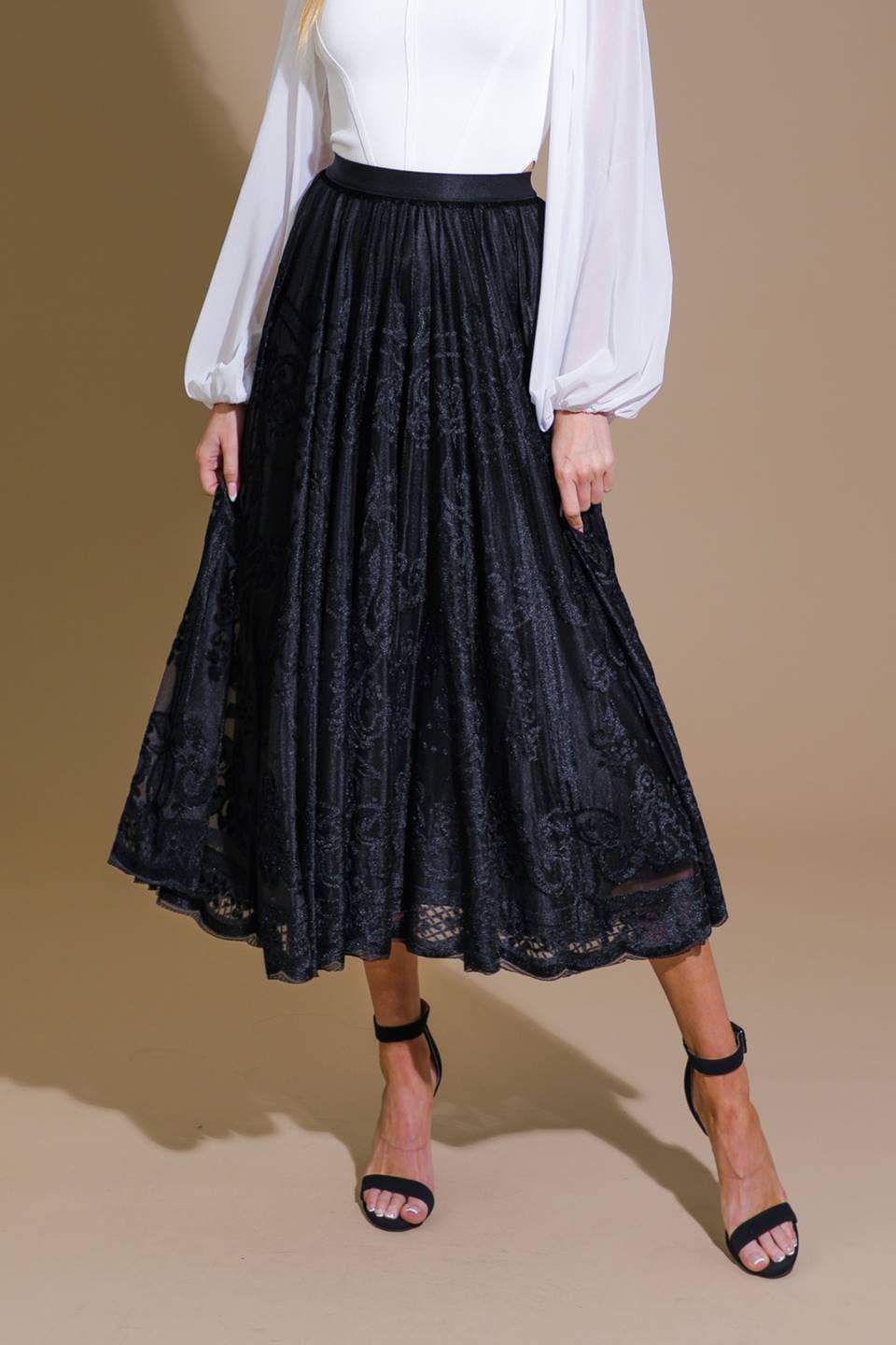 Saia midi de veludo burnout com cós elástico - IK7645