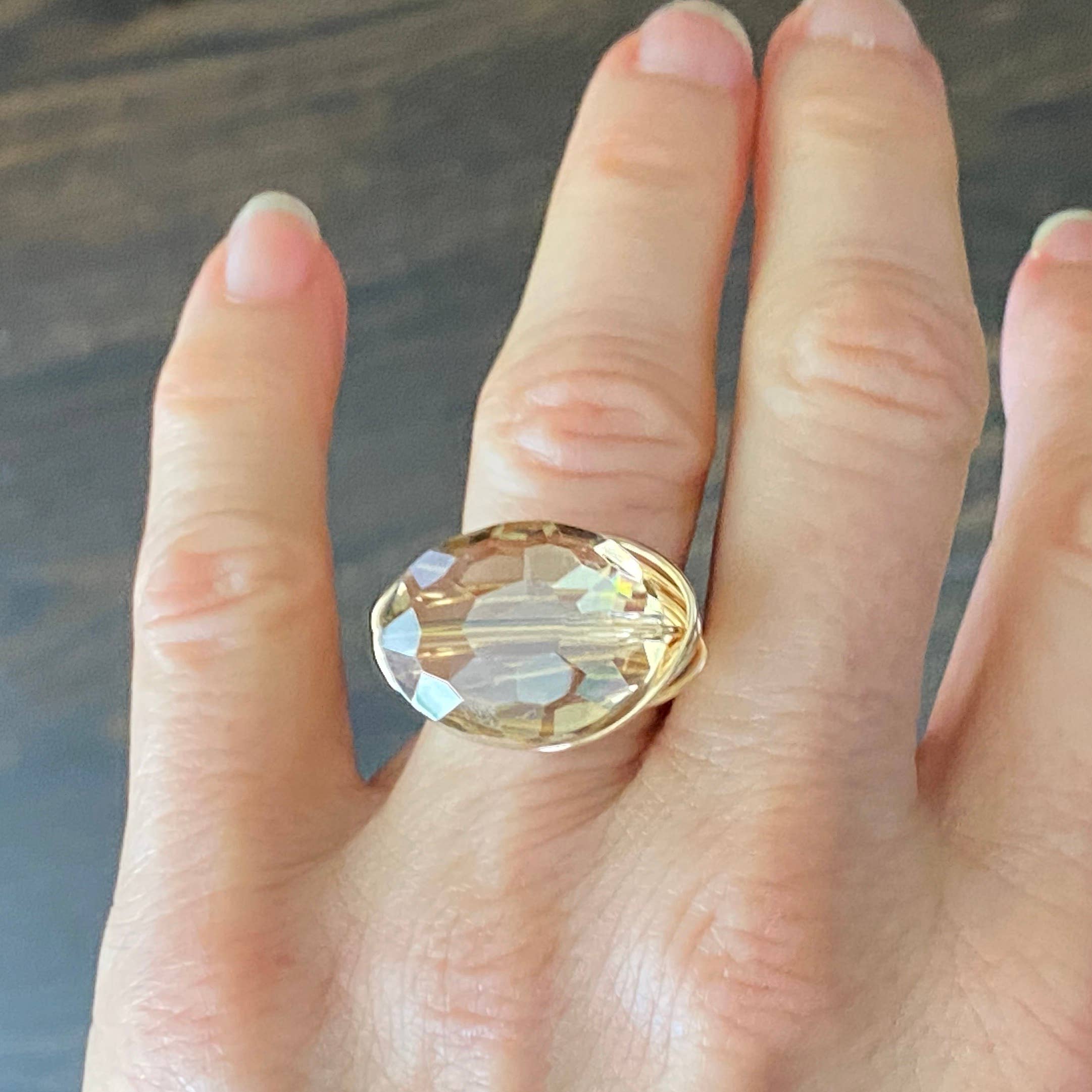 Crystal Ring Cocktail Statement Fio Prata Envolvido