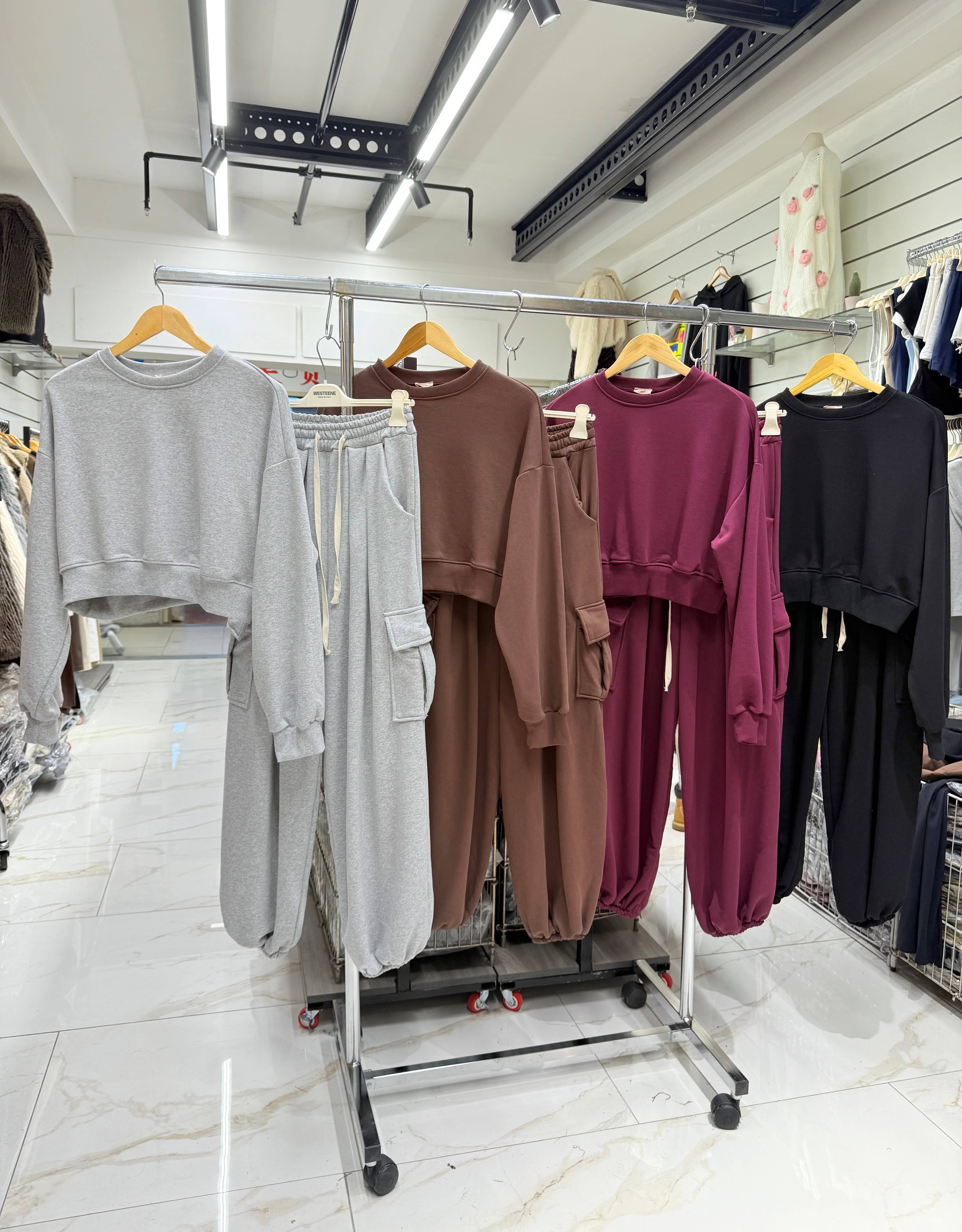 Relaxe com estilo enquanto usa um conjunto de loungewear coordenado, adequado para muitas ocasiões! Apresenta um top curto de manga comprida com um incrível decote com zíper e corredores de grandes dimensões combinando em tecido sedoso. Combine-o com tênis grossos para obter o estilo perfeito e sem esforço.