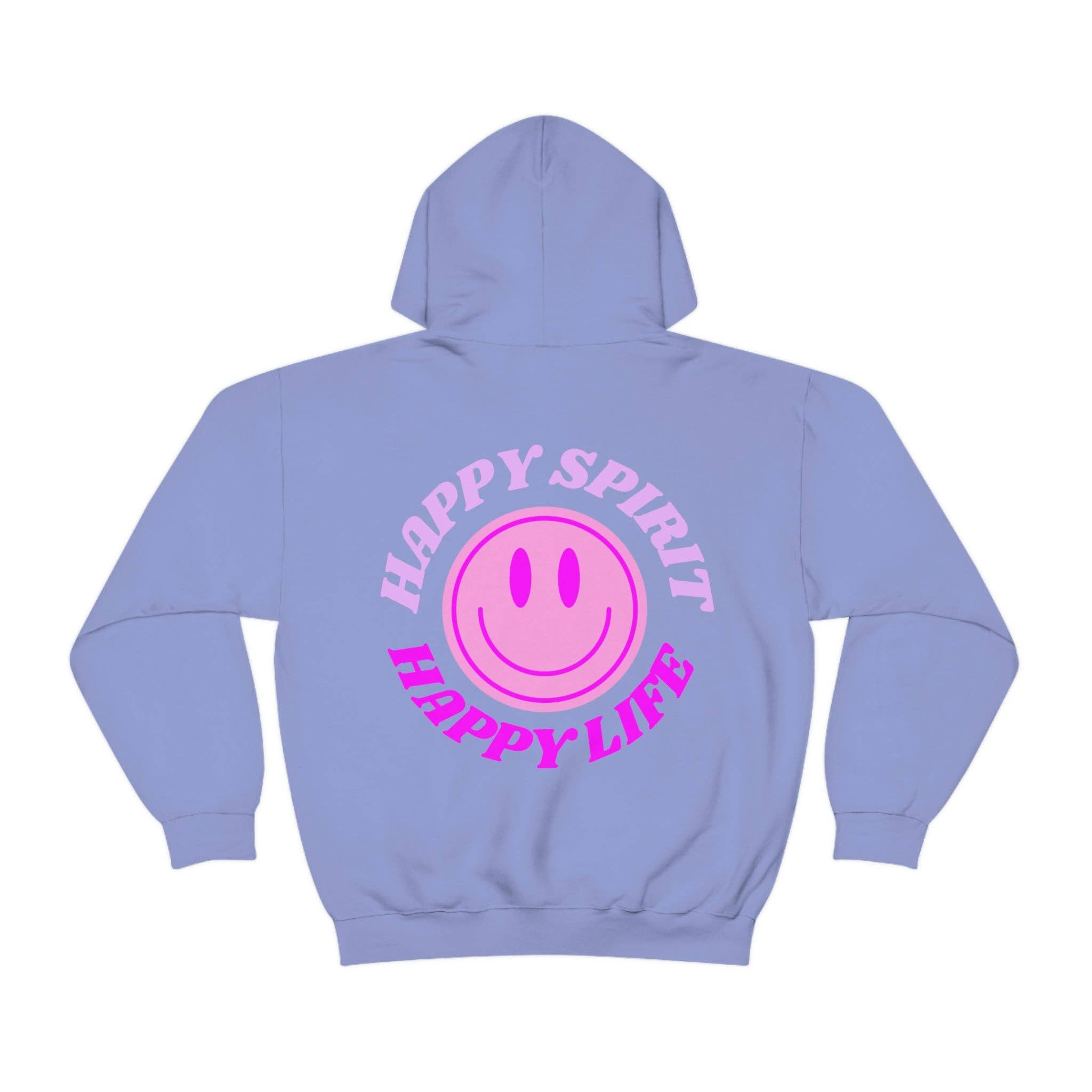 Sweatshirt Happy Spirit Happy Life Hoodie Gildan VSCO Rapariga, Oversized Tumblr Traseira Impressão Sorriso Happy Mind Trendy Capa Font Retro