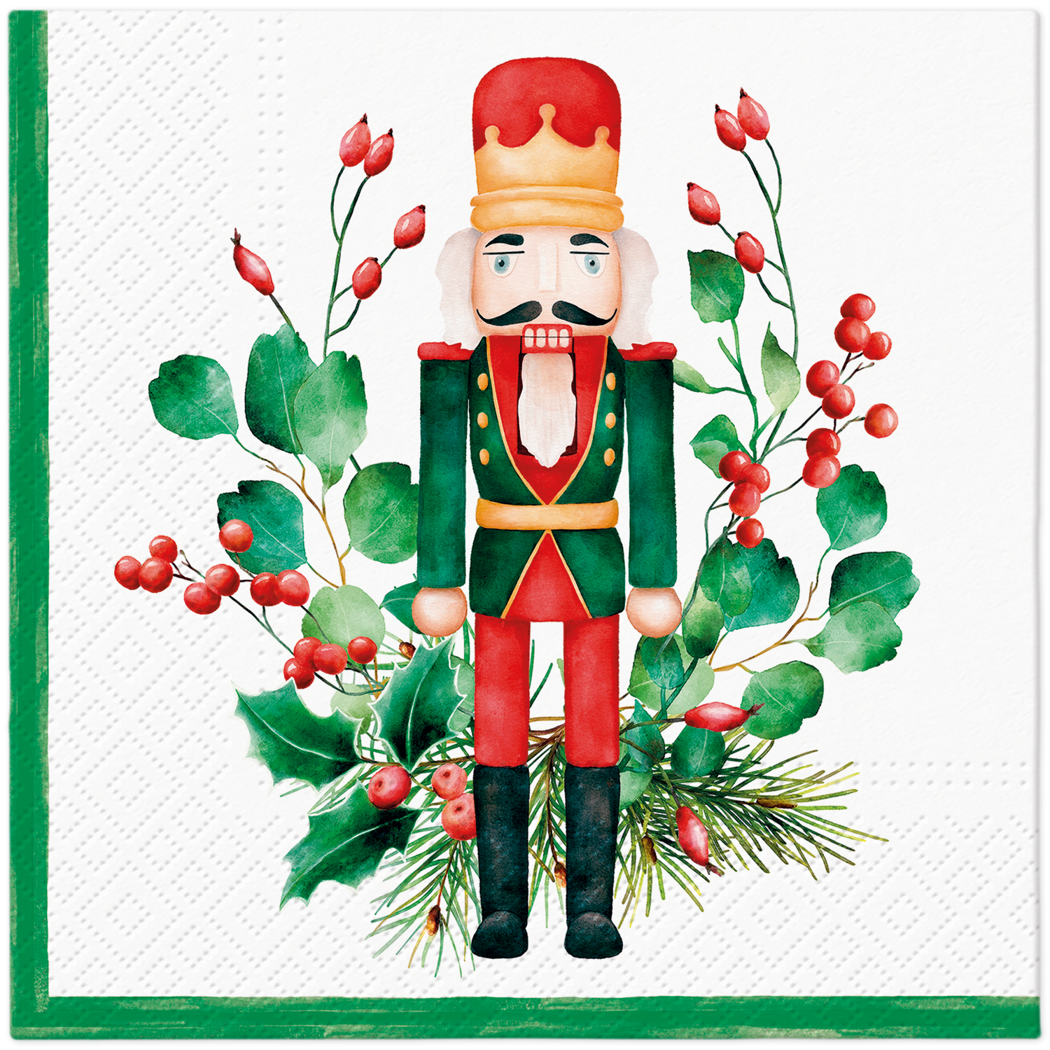 Ótima qualidade europeia! 3 camadas feitas com tecidos sem cloro, papel e tintas à base de água. 20 guardanapos/pacote Tamanho do almoço: 6,5 “x 6,5" Tamanho do coquetel: 5 “x 5"