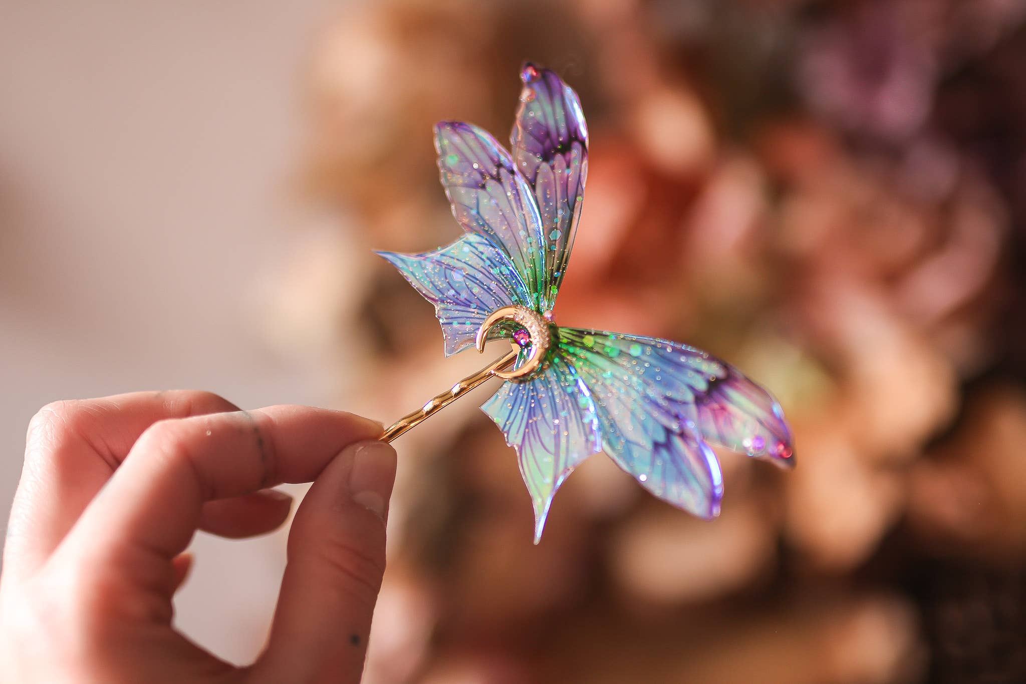 Ganchos de Cabelo Borboleta Ganchos de cabelo únicos e feitos à mão são prateados e cortados em diamante com design de joalharia de borboleta. Encontre seleções de brincos, pulseiras, colares, anéis e medalhões a condizer.