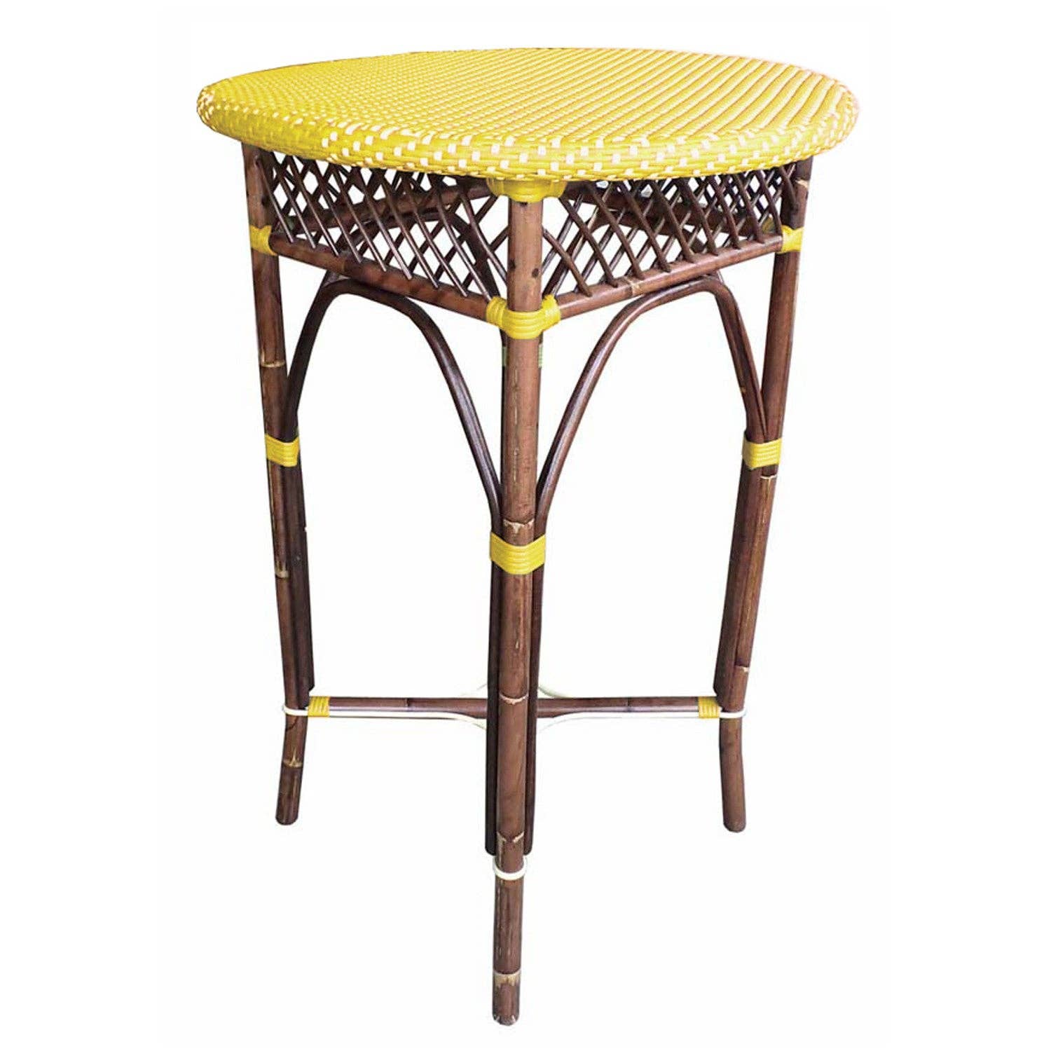 Código do Produto: FBT13-27-5-BLB Dimensões: 69,9 cm de largura x 69,9 cm de profundidade x 76,2 cm de altura Parte icônica dos bistrôs de Paris, nossas mesas de jantar bistrô francesas recriam o charme de um café parisiense ao ar livre. Estas mesas charmosas têm aparência autêntica graças à estrutura resistente de rattan curvado e ao entrelaçado manual de fibra plástica para todas as condições climáticas. Cadeiras de jantar, banquetas de bar e banquetas de balcão combinando também estão disponíveis. Observe que as cores reais do móvel e do tecido podem variar ligeiramente em relação às fotos devido à iluminação e às configurações do monitor. Materiais principais: rattan Materiais secundários: fibra de tecido plástico PE para todas as condições climáticas Porto de origem: Jacarta