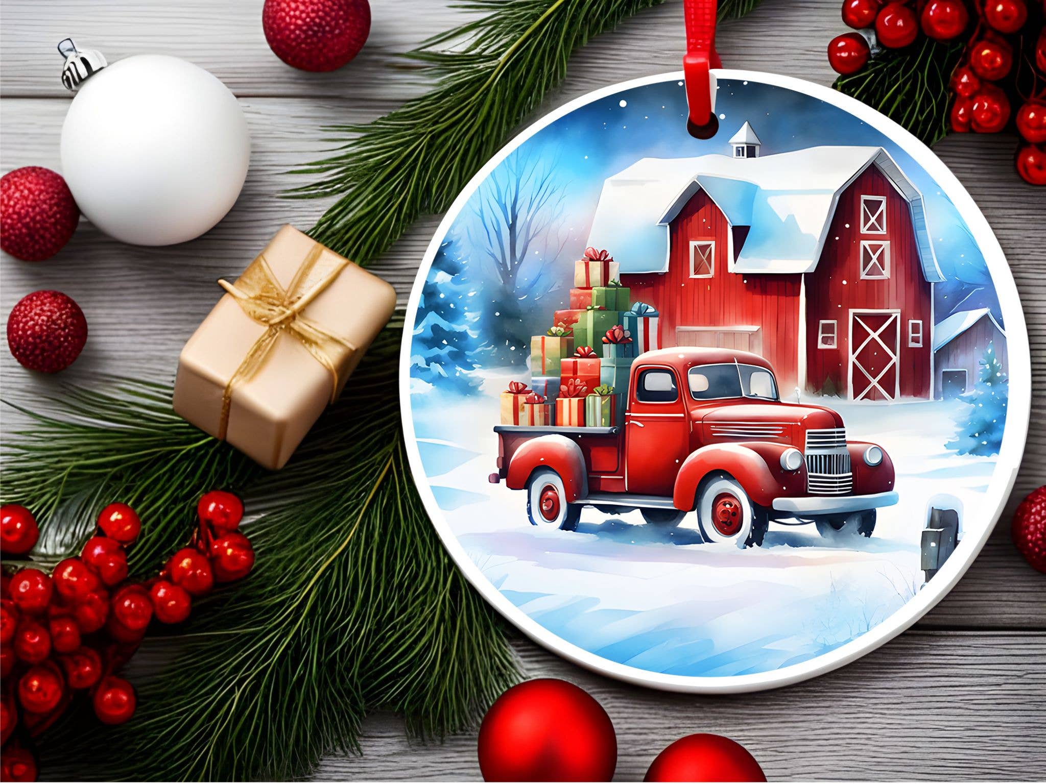 Enfeites de árvore de Natal em cerâmica são perfeitos para presentes ou para adicionar à sua própria árvore de Natal. Detalhes: Material: Cerâmica branca brilhante Tamanho do enfeite: Círculo de 2,8" Peso: 2 oz. Embalagem: Embalagem de venda a retalho - saco de plástico transparente com topo de cartão e furo para exibição suspensa ** A imagem é impressa apenas de um lado. O verso é branco. ** Todos os enfeites têm uma fita vermelha para pendurar. ** A cor pode variar de monitor para monitor em comparação com o produto real ** Fabricado no Canadá com materiais importados.