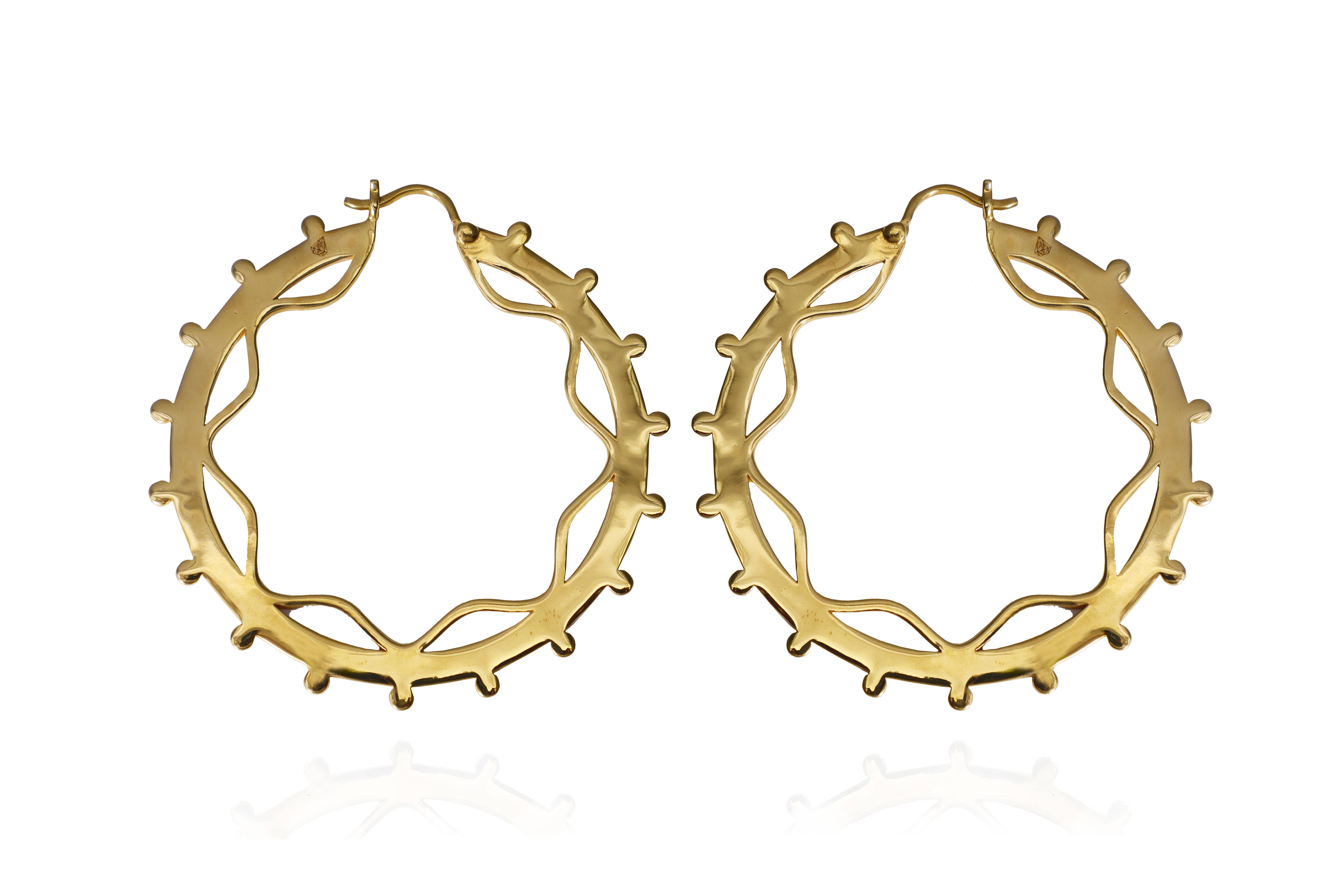 O design do Harmony é inspirado no templo sagrado do macaco em Ubud, Bali. Um templo criado com referência à filosofia Tri Hita Kirana. Traduzido para as “três razões de prosperidade”. Significa harmonia com um poder superior, harmonia entre as pessoas e harmonia com a natureza. O aro, em forma de círculo, faz parte do total de três elementos de design que representam este equilíbrio harmonioso. Nesses tempos pode sentir-se ansioso e cansado, olhar sempre para trás, para o poder da harmonia eterna. Perceba que o segredo da prosperidade está dentro do equilíbrio harmonioso que mantemos com tudo o que está à sua volta. Projetado em Nova Iorque e fabricado na Índia. Material: Latão banhado a ouro com um poste de brinco em prata de 1ª Lei.