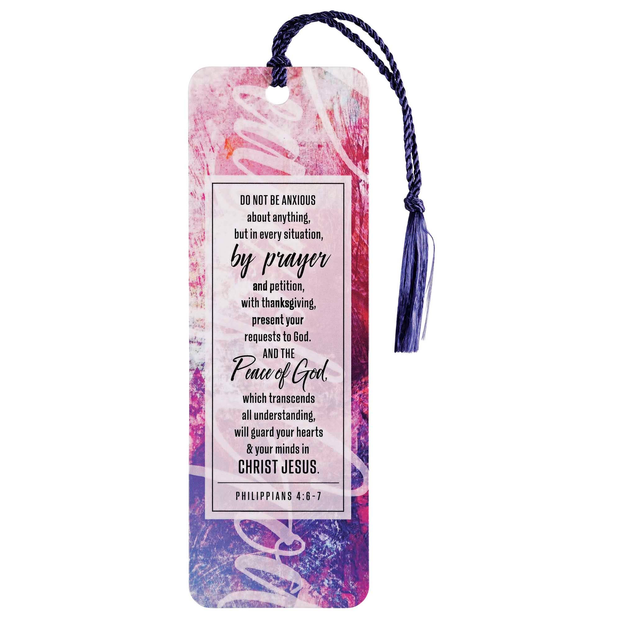 O fruto do Espírito é amor, alegria, paz, paciência, bondade, bondade, fidelidade, gentileza e autocontrole. Gálatas 5:22-23 é exibido dentro de um divertido design de frutas e listras neste marcador de 2 “x 6". Coberto com um cordão de borla coordenado. Para e de espaços na parte de trás.