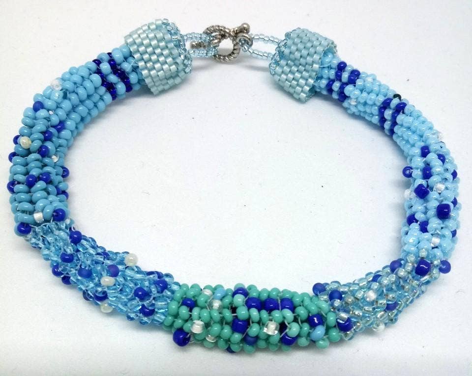 Esta é uma pulseira de contas de vidro com miçangas com um fecho seletor de miçangas. É composto por grânulos de sementes violetas e contas de vidro azul arco-íris facetadas polidas a fogo num padrão de ponto peiote de duas gotas. O fecho é do tipo alternador com miçangas e a pulseira é amarrada no fio FireLine. 8,5" incluindo fecho - a seção frisada tem 7" de comprimento e 0,75" de largura Por favor, aguarde um tempo extra para que isso seja feito sob medida.