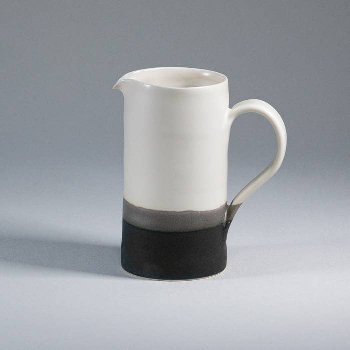 Fazer este jarro estilo jarra surgiu da ideia de manter a água sobre a mesa num recipiente. O tamanho pequeno é adequado para leite ou molho. A jarra alta é ótima para servir água ou qualquer refrigerante. São muito bons despejamentos porque deixo a borda da bica muito afiada para que corte bem o líquido. Estão disponíveis na minha gama de cores.
