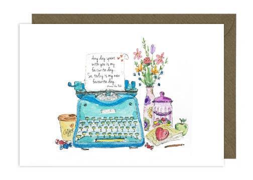 Cartão feito à mão Love You More Than Coffee por stonedonut design. Este design é impresso em um lindo cartão fotográfico fosco polar e vem com um envelope incluído para sua conveniência.
