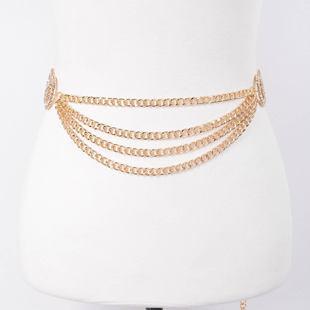 • Cinto de correntes em camadas. • Feito de ferro • Largura aproximada: 1,8 cm (0,7") • Comprimento aproximado: 117 cm (46")