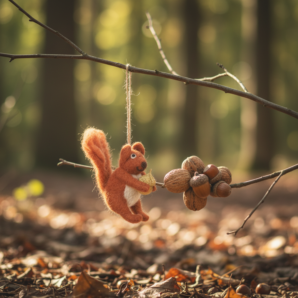 Decoração de suspensão biodegradável de esquilo espesso vermelho de feltro artesanal