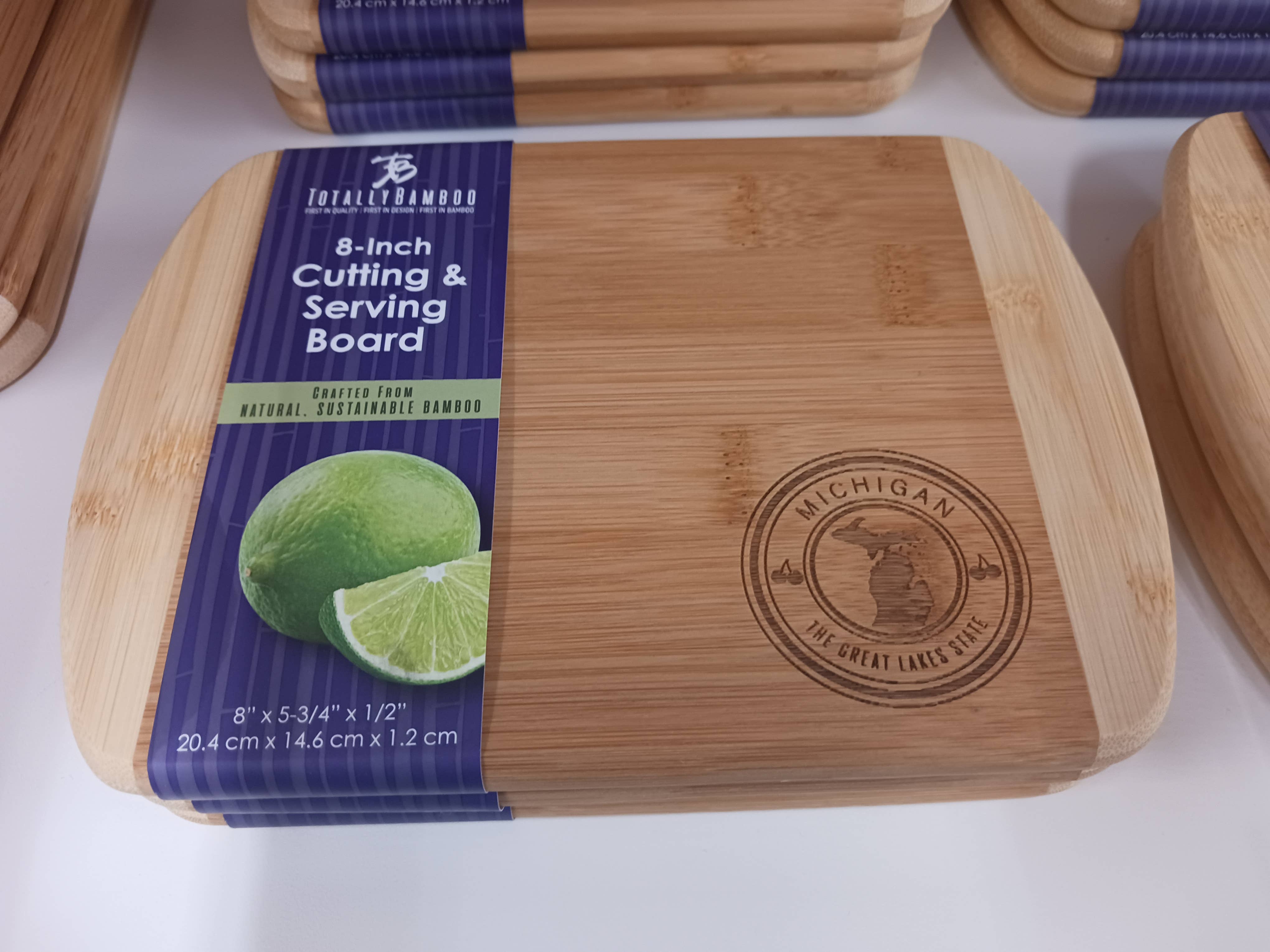 Adicione uma "Fatia de Vida" do seu estado à sua loja! Estas tábuas lindamente trabalhadas aplicam a arte da série Destination mais vendida da Totally Bamboo a uma popular tábua de corte de bambu de 11" em dois tons, para um toque mais funcional de casa na cozinha. O lado gravado da tábua apresenta uma arte divertida e gravada que destaca as principais cidades e pontos turísticos do estado. Os compradores adoram usá-las como tábuas de charcutaria que iniciam conversas. Cada pedaço de queijo, carne ou bolachas removido revela mais do mapa e outro lugar para discutir e relembrar. O lado reverso em branco oferece todos os benefícios de uma tábua de corte de bambu; é durável e suave para as facas.