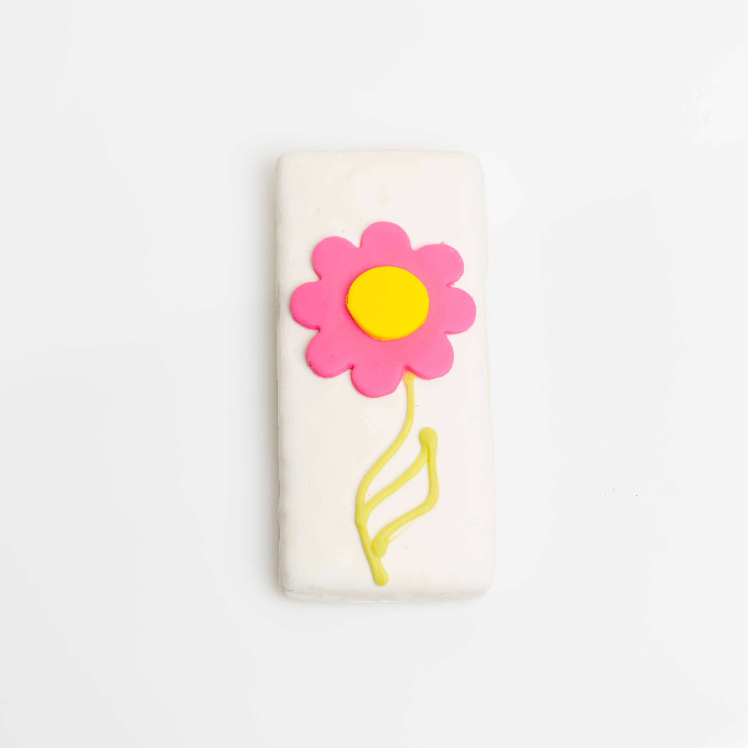 Sanduíche Graham coberto de chocolate com manteiga de biscoito no meio; adoráveis corações de fondant rosa.