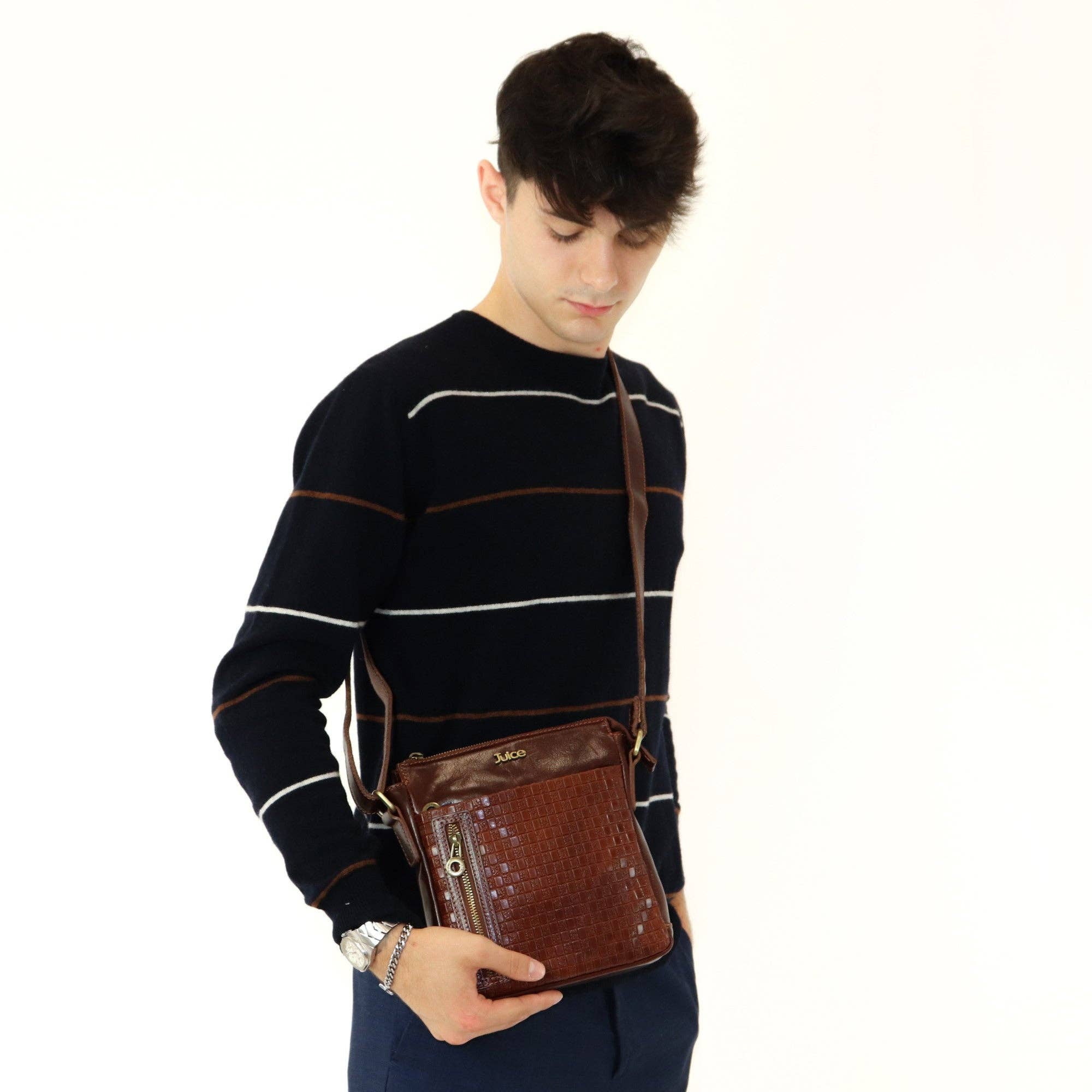 Uma nova versão da clássica bolsa mensageiro DECE, The Satchel oferece maior capacidade sem perder o estilo. Bolsa de couro feita à mão, ideal para profissionais e estudantes que buscam simplicidade com um novo mecanismo de fechamento. Uma excelente adição à família DECE! Para limpeza, use apenas um pano macio e úmido, sabão neutro e água fria. Reaplique cera neutra para couro.
