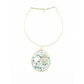 Feito à mão com miçangas e banhado a ouro. Comprimento: 17".