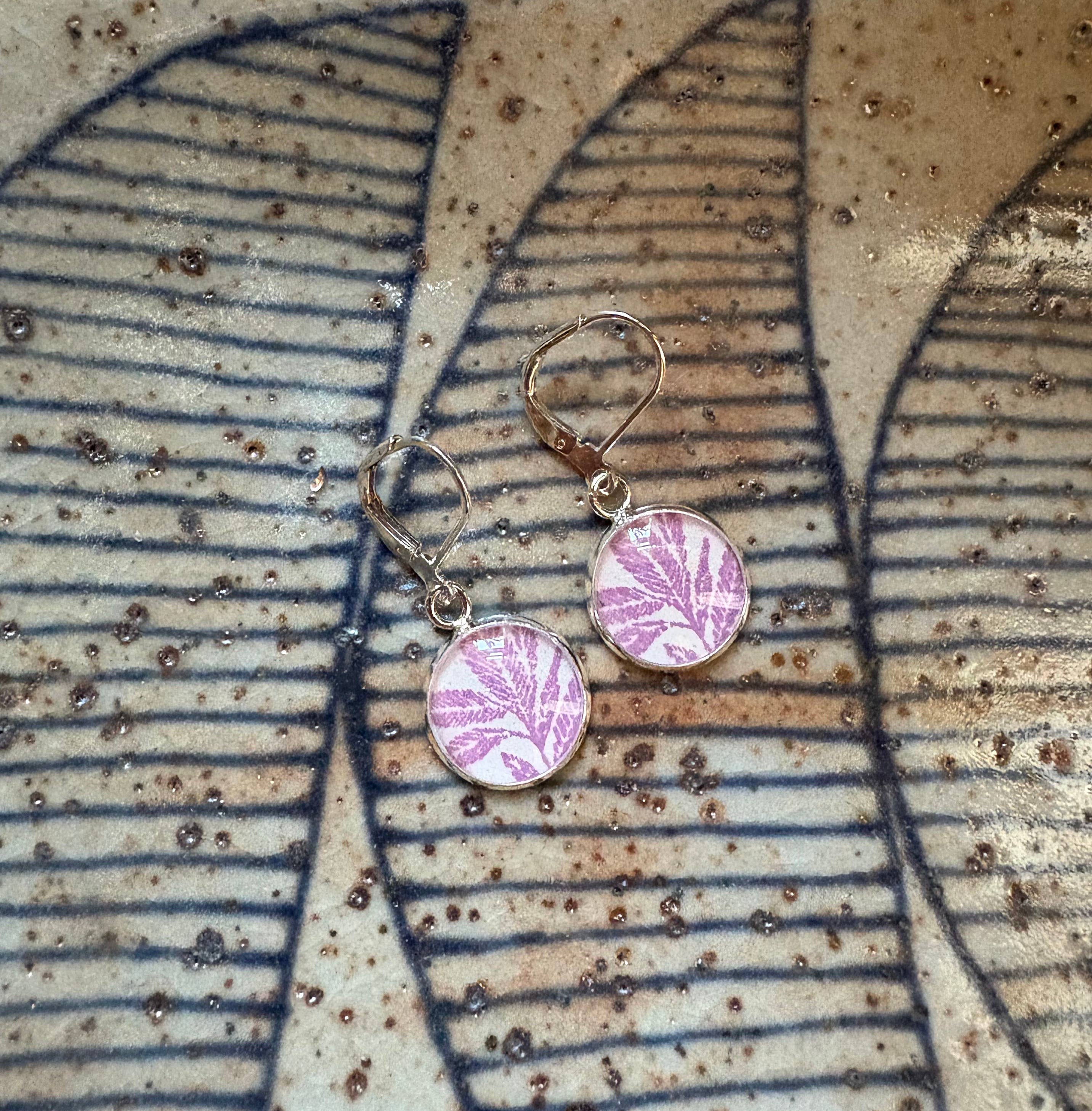 papel/resina vintage, tinta de arquivo, metal prateado de 12mm, fechos de alavanca prateados sem níquel. Uma coleção que incorpora estampagem manual, papel vintage e resina. Este estilo evoca a repetição lúdica e as imperfeições encantadoras do papel de parede vintage serigrafado à mão e inspira-se na maravilhosa flora e fauna que cultivamos na nossa propriedade. Estes brincos pendentes alegres são o toque perfeito de cor! Cada par apresenta imagens botânicas ou de abelhas em tinta de arquivo azul cobalto estampadas à mão num fundo de papel cremoso retirado de livros vintage. Cada design encantador é apresentado numa moldura de metal prateado esbelta de 12mm sob camadas de resina em cúpula para proteção que serve para realçar e magnificar a sua beleza. Os brincos pendem aproximadamente 3,2 cm de cima a baixo, seguros com fechos de alavanca sem níquel. Tudo é feito à mão e único, o que faz parte do seu charme. Cada par único vem num cartão de marca para apresentação com um cartão de cuidados/informações separado.