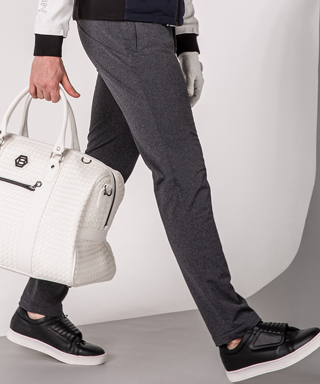 Ele usa tecido funcional elástico de quatro vias TOW WAY e usa mecha elástica de cintura para OB para maximizar o uso confortável e a atividade N, ao mesmo tempo em que cria linhas finas e longas. O design de faixas laterais da BLACK&WHITE cria um visual esportivo simples e elegante com pernas longas. PARECE FINO E DE COMPRIMENTO LONGO EM FORMA O modelo tem 6 pés e usa parte superior grande/parte inferior média.