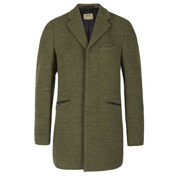 Com base em elementos de design clássicos do norte da África, como mangas embelezadas com fenda e golas altas e rígidas, este casaco combina design de silhueta moderna com técnicas tradicionais. As bordas são todas embelezadas com fios Bershman trançados à mão, uma técnica tradicional do norte da África que requer dois artesãos trabalhando em uníssono para trançar e prender cuidadosamente os fios de lã ao longo de toda a borda desta peça, bem como embelezar motivos berberes ao longo dos lados, bolsos, e mangas. O casaco tem dois bolsos de cada lado, bem como bolsos internos. O fechamento do painel lateral tem botões ocultos ao longo de toda a borda. Tem um interior totalmente forrado, enquanto o exterior é tecido de lã de ovelha cinza não tingida local pelo mestre tecelão Jerban Riyadh em um tear de madeira tradicional.