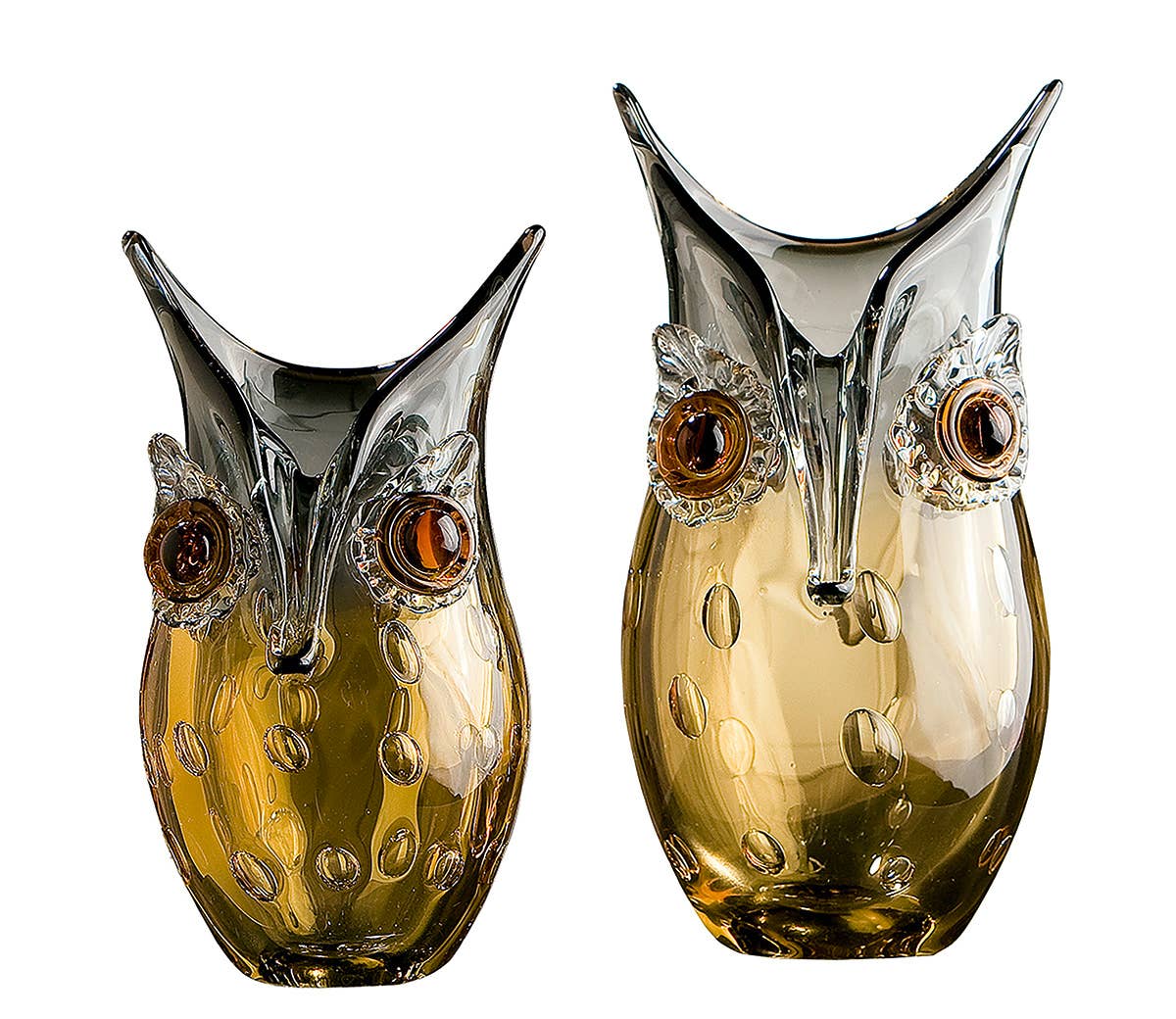 Vaso GlasArt coruja âmbar, cinza soprado na boca e cor sólida Tamanho: 14 x 0 x 27 x 12 cm
