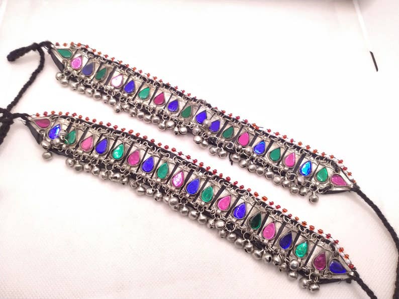 • Estes elegantes e fantasticamente trabalhados tornozelo tribais são uma das peças mais admiradas da nossa coleção. O detalhe e padrão nestes tornozelos tribais são excecionais. Pequenos sinos rítmicos prateados são contornados por todos os tornozelos. Com cada movimento, eles jingam suavemente. O design intrincado destes tornozlets é excepcional. • A liga metálica da melhor qualidade é usada ao criar esta obra-prima. Estes tornozlets tribais sedutores são leves e são fáceis de usar. A forma como estes tornozelos se encaixam no tornozelo é tão satisfatória. Talentosos artesãos do sul asiático trabalharam para fazer esta incrível peça tribal. A qualidade antiga da fechadura é usada para usar esta peça artística. • Estes tornozlets tribais são perfeitos para ocasiões tradicionais, como casamentos, compromissos, reuniões familiares e muito mais. Pode combinar estes brincos tribais tentadores com qualquer cor, qualquer estilo e eles dar-lhe-ão um look perfeito.