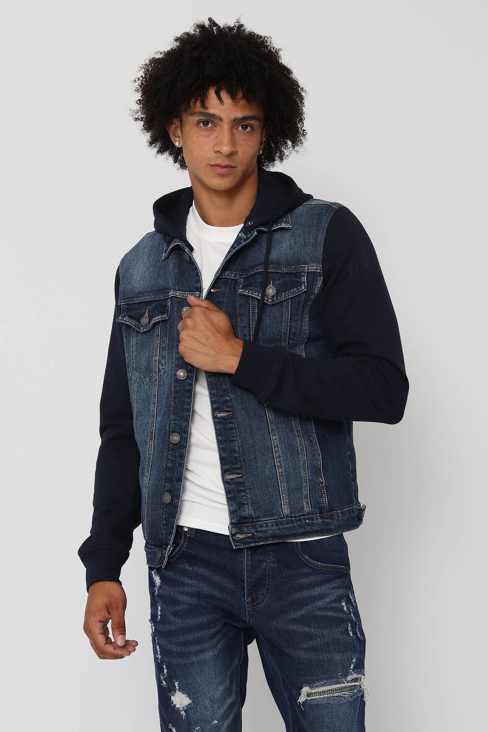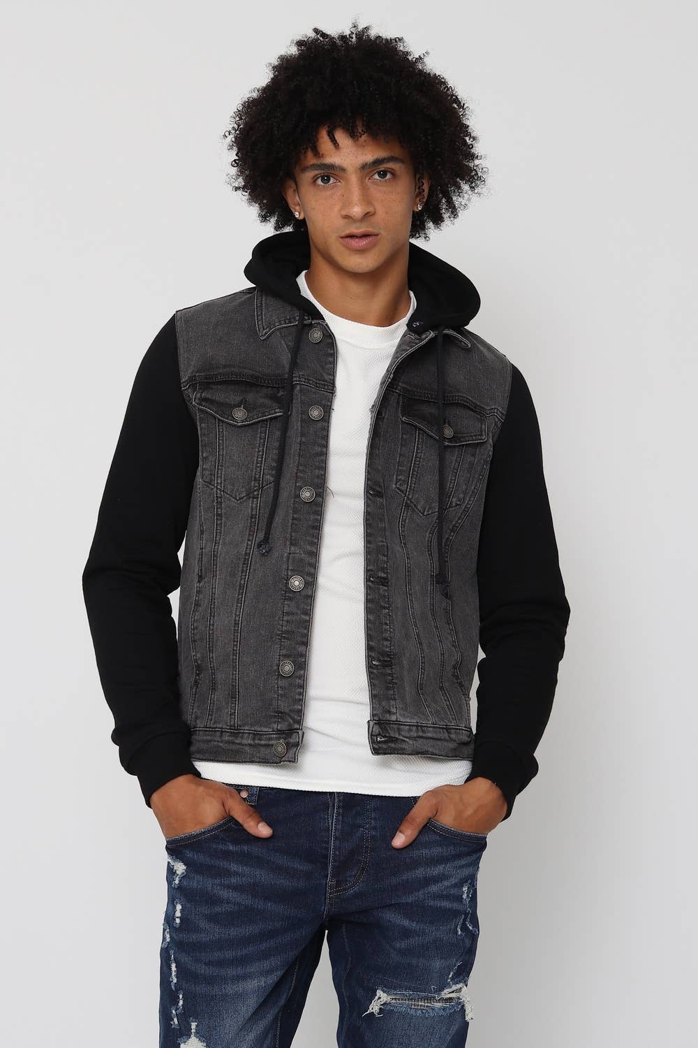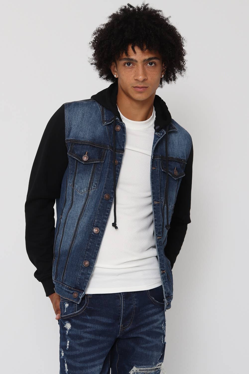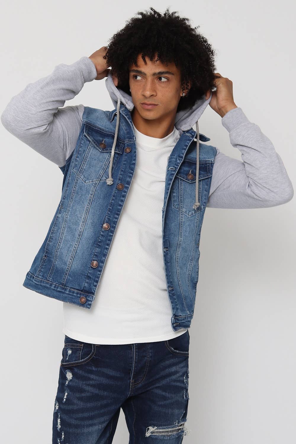 Este colete jeans preto sem mangas combina estilo e versatilidade para um visual urbano e ousado. Confeccionado em tecido jeans resistente, apresenta um corte moderno com acabamentos refinados. Bolsos no peito e botões metálicos adicionam detalhes clássicos, enquanto a ausência de mangas confere um toque contemporâneo e casual.