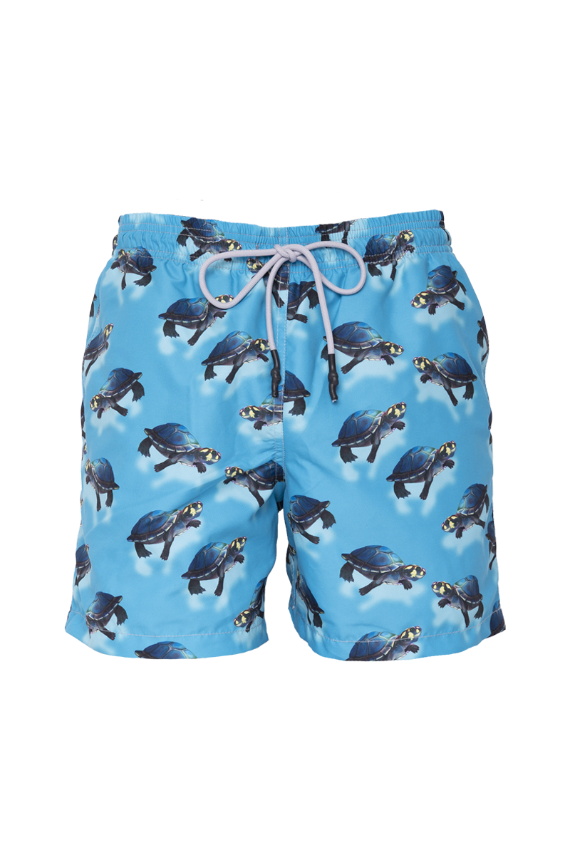 Calção de banho. Roupa de praia Steam - moda sustentável. Coleção amazonas: uma homenagem à nossa floresta tropical colombiana. A modelo está usando tamanho de amostra pequeno.