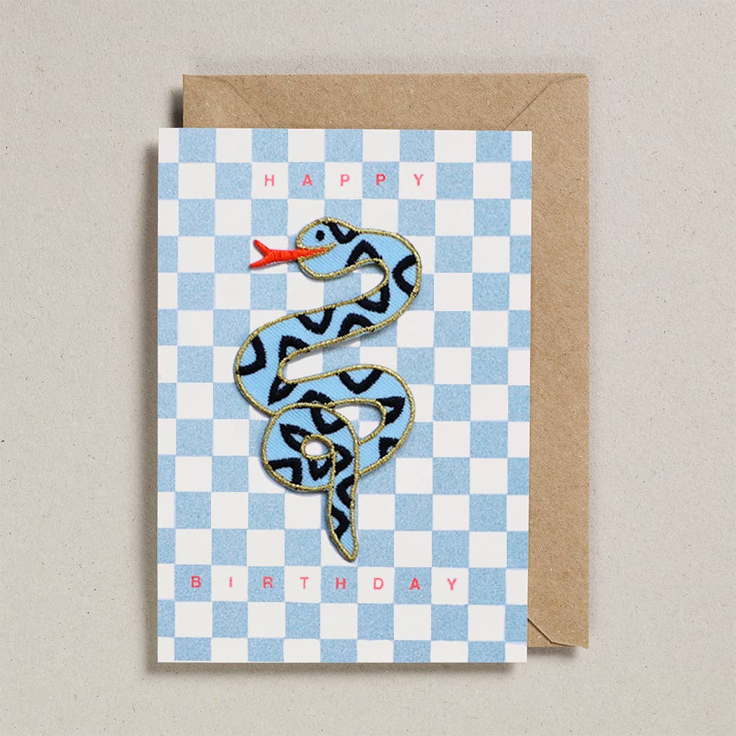 Adornado com um emblema removível de camaleão para passar a ferro. Cada cartão é uma impressão risográfica única usando tintas à base de soja. Note que as cores fluorescentes não aparecem bem na fotografia. Interior em branco para a sua própria mensagem. 105mm x 150mm - pacote de 6.