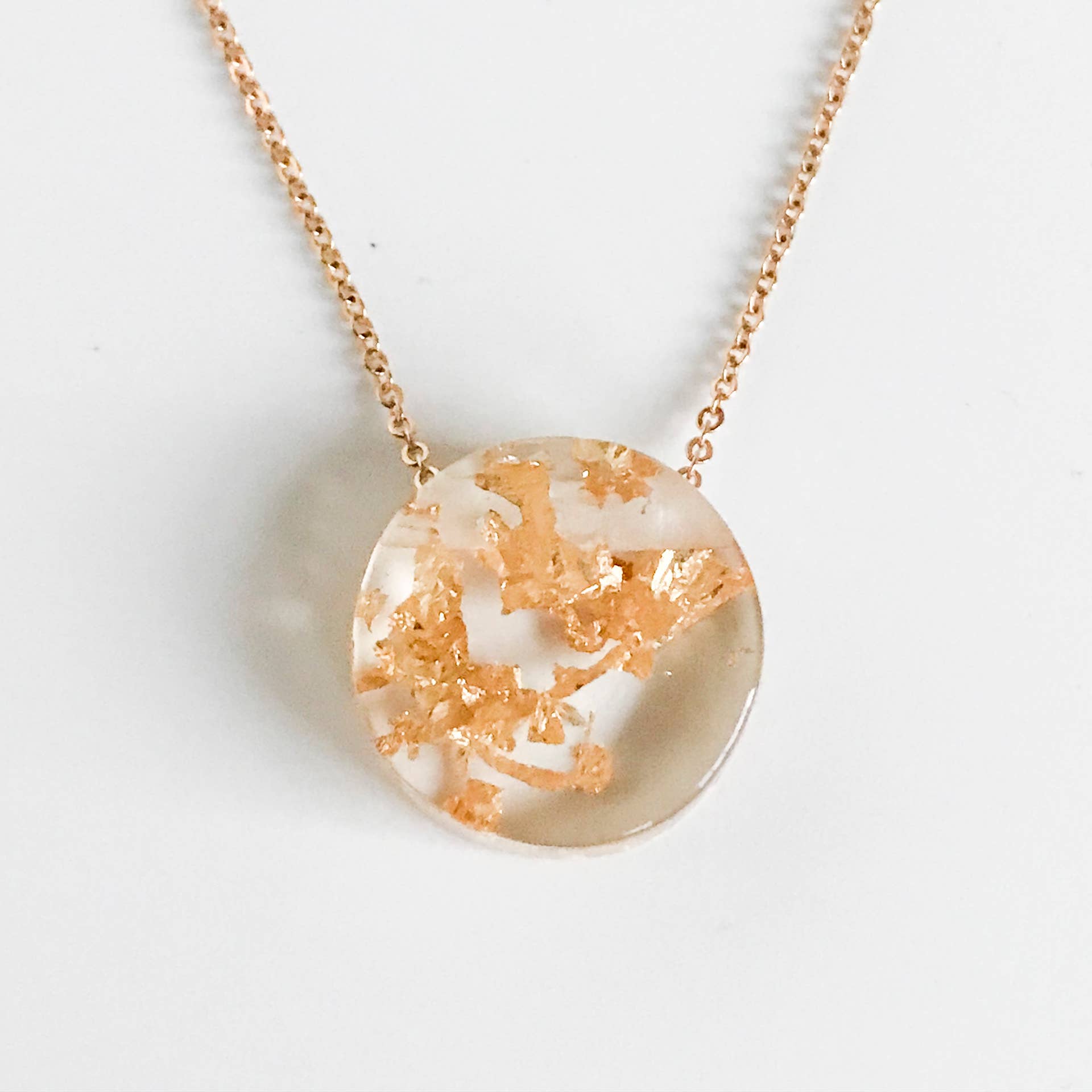 Pingente Tagua Pod de resina ecológica sustentável fundido à mão com folha de ouro ou prata embutida em uma corrente banhada a ouro 24K ou prata esterlina de 18" correspondente.