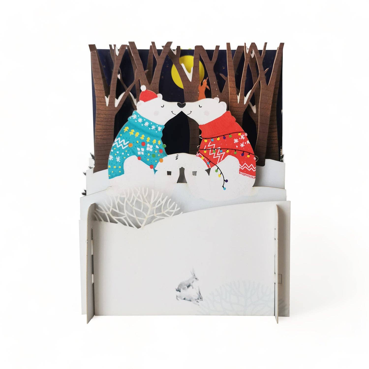 Este cartão de Natal é acentuado com toques pintados à mão de glitter cintilante. Feito nos EUA, este cartão interno em branco de 5 “x 7" deixa espaço para você escrever sua própria mensagem pessoal e/ou adicionar sua foto favorita. Ele vem para você embalado individualmente com o envelope fechado. Feito com materiais de qualidade a partir de recursos sustentáveis e ecológicos. Requer postagem padrão para envio.