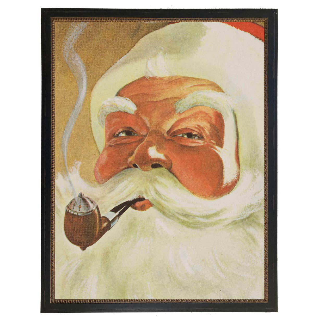 Reprodução vintage de pintura a óleo de Natal em moldura de madeira atrás de vidro