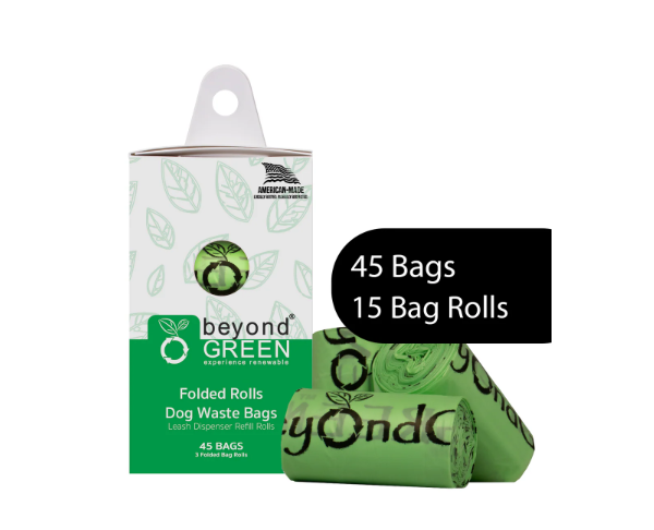 beyondGREEN Sacos para Dejetos de Cão – 45 Unidades em Rolos Dobrados