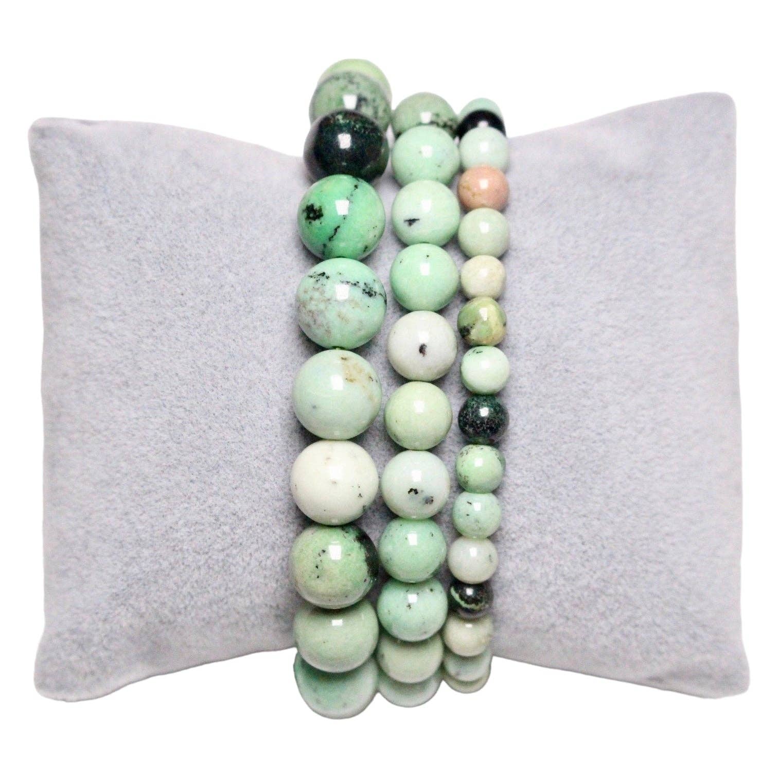 Pulseira mista de jaspe Kambaba em pedra natural: Cores: Verde Diâmetro das contas: 4/6/8/10 mm Comprimento da pulseira: 19 cm Montagem elástica Quantidade aproximada de contas conforme o tamanho: - 4 mm (18 cm) = cerca de 45 contas - 6 mm (19 cm) = cerca de 32 contas - 8 mm (19 cm) = cerca de 24 contas - 10 mm (19 cm) = cerca de 19 contas Origem: Madagascar