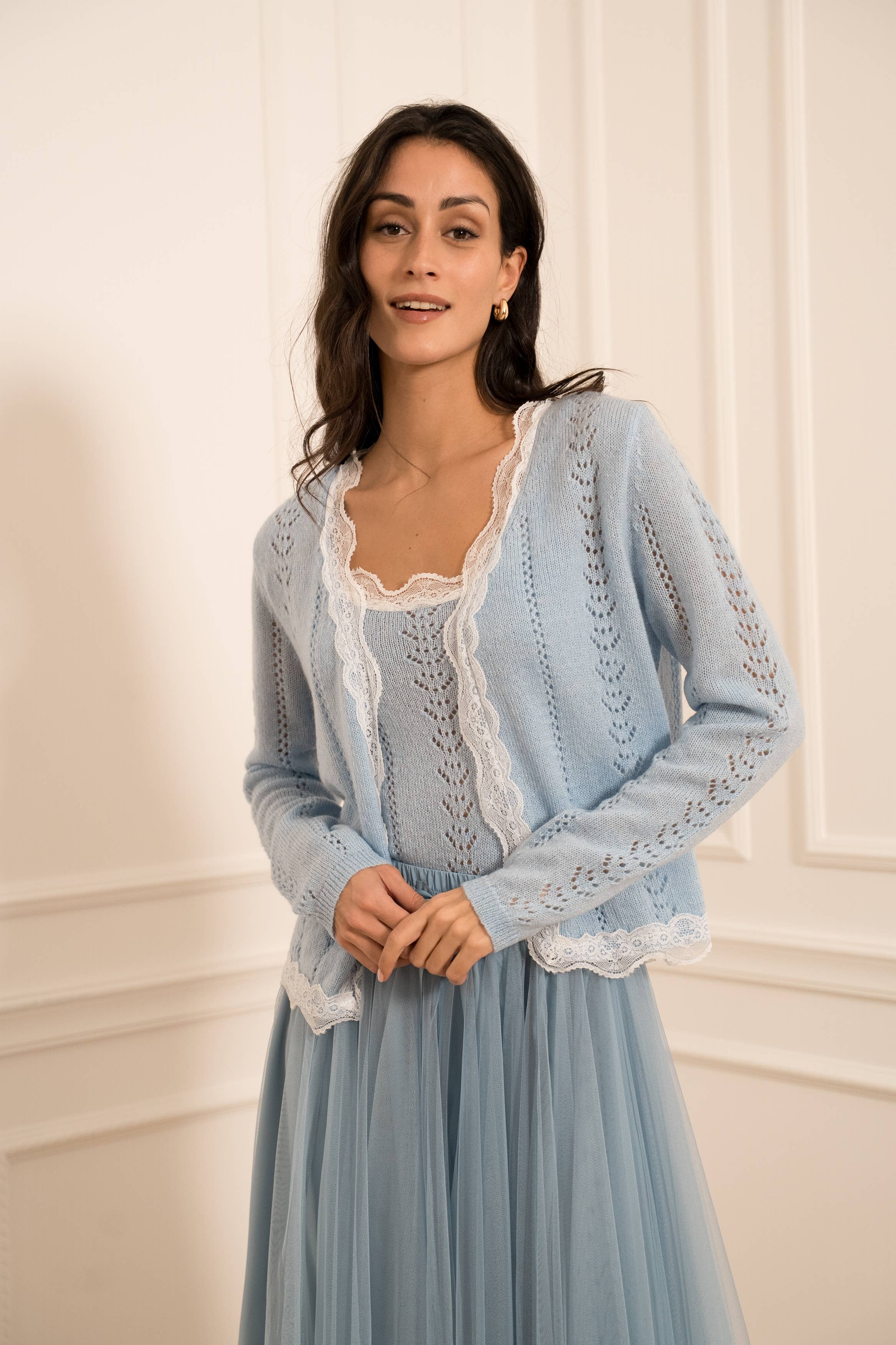 CONJUNTO DE CARDIGÃ E SAIA TRICOTADOS ISLE