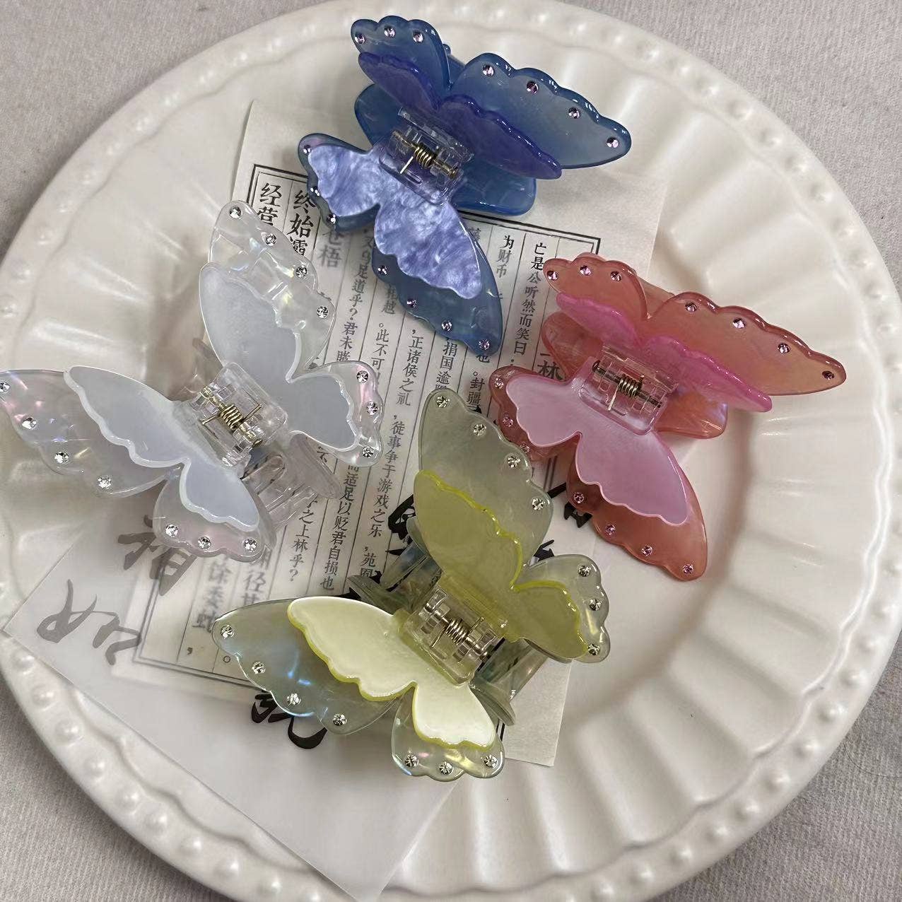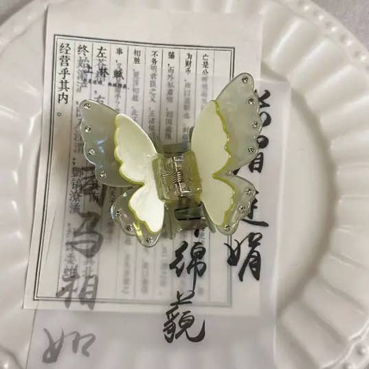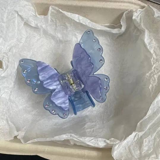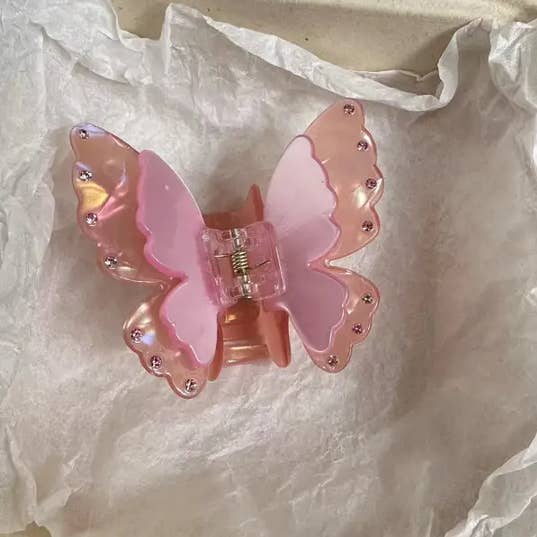 Garra de cabelo em forma de borboleta com gradiente de cor e personalidade doce