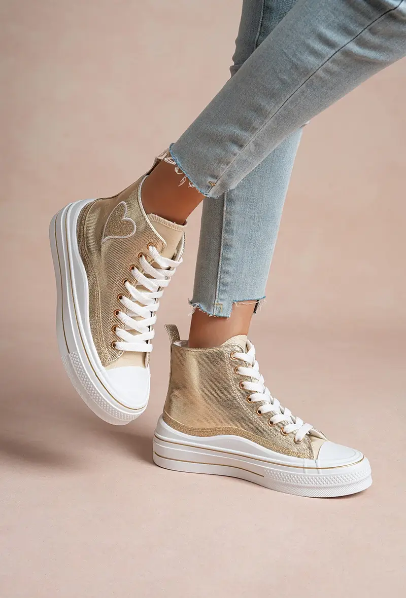 Melhore o seu estilo casual com as Sapatilhas Plataforma HeartBeat. Desenhadas com uma parte superior em lona bege suave, estas sapatilhas apresentam um encantador coração bordado e detalhe "amor" na lateral, adicionando um toque de doçura ao seu visual diário. A sola plataforma de borracha branca e espessa oferece tanto altura extra quanto conforto supremo, enquanto o design clássico com atacadores garante um ajuste seguro. Perfeitas para combinar com jeans, saias ou vestidos de verão, estas sapatilhas são a mistura ideal de diversão e praticidade. Detalhes de compra - Pack Tamanho: 3/4/5/6/7/8 Proporção: 1/2/3/3/2/1
