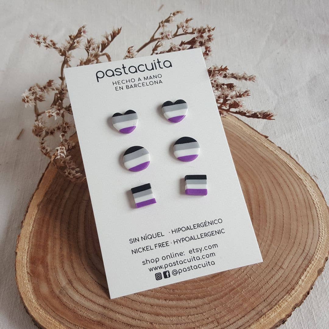 Brincos de argola pequenos do orgulho assexual em argila polímera
