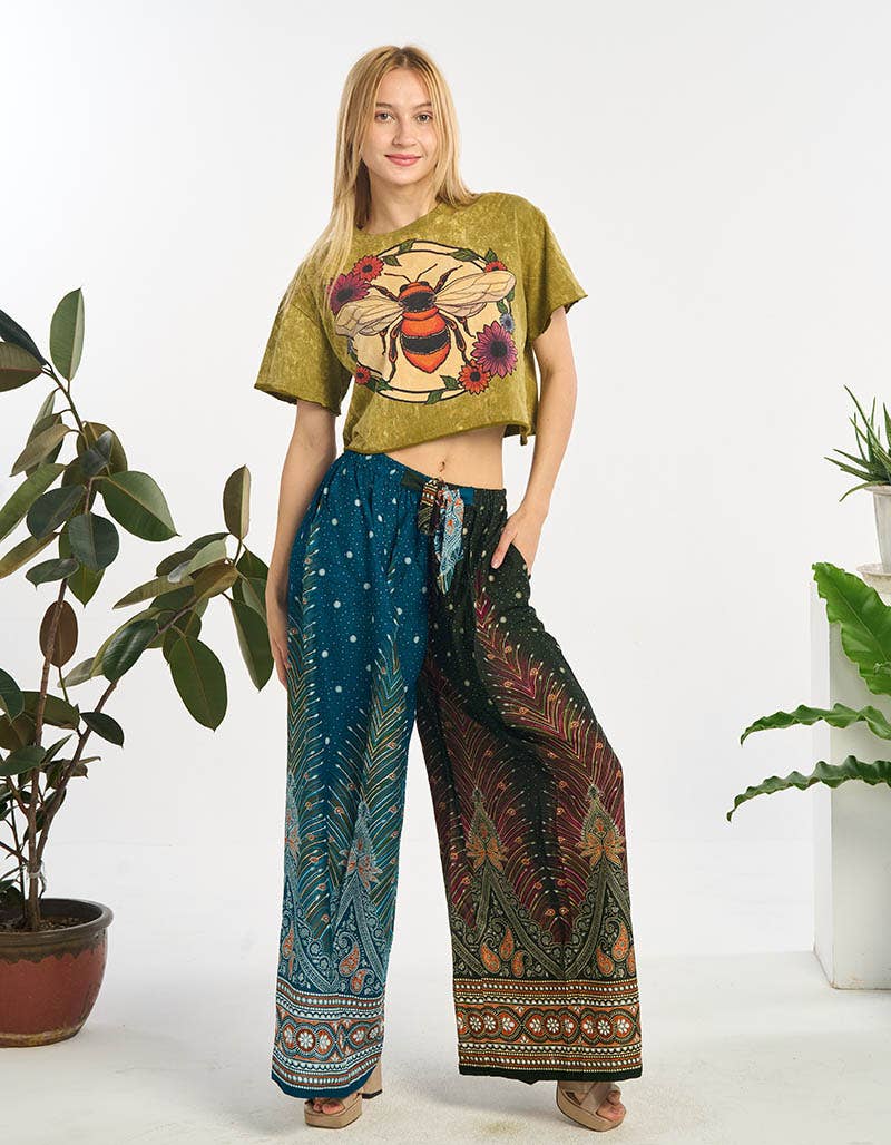 CALÇA PALAZZO DE COGUMELOS COM BOLSOS LATERAIS Pacote de 3 (1 cor cada), $12.00 Ea. 100% Rayon Tamanho Único