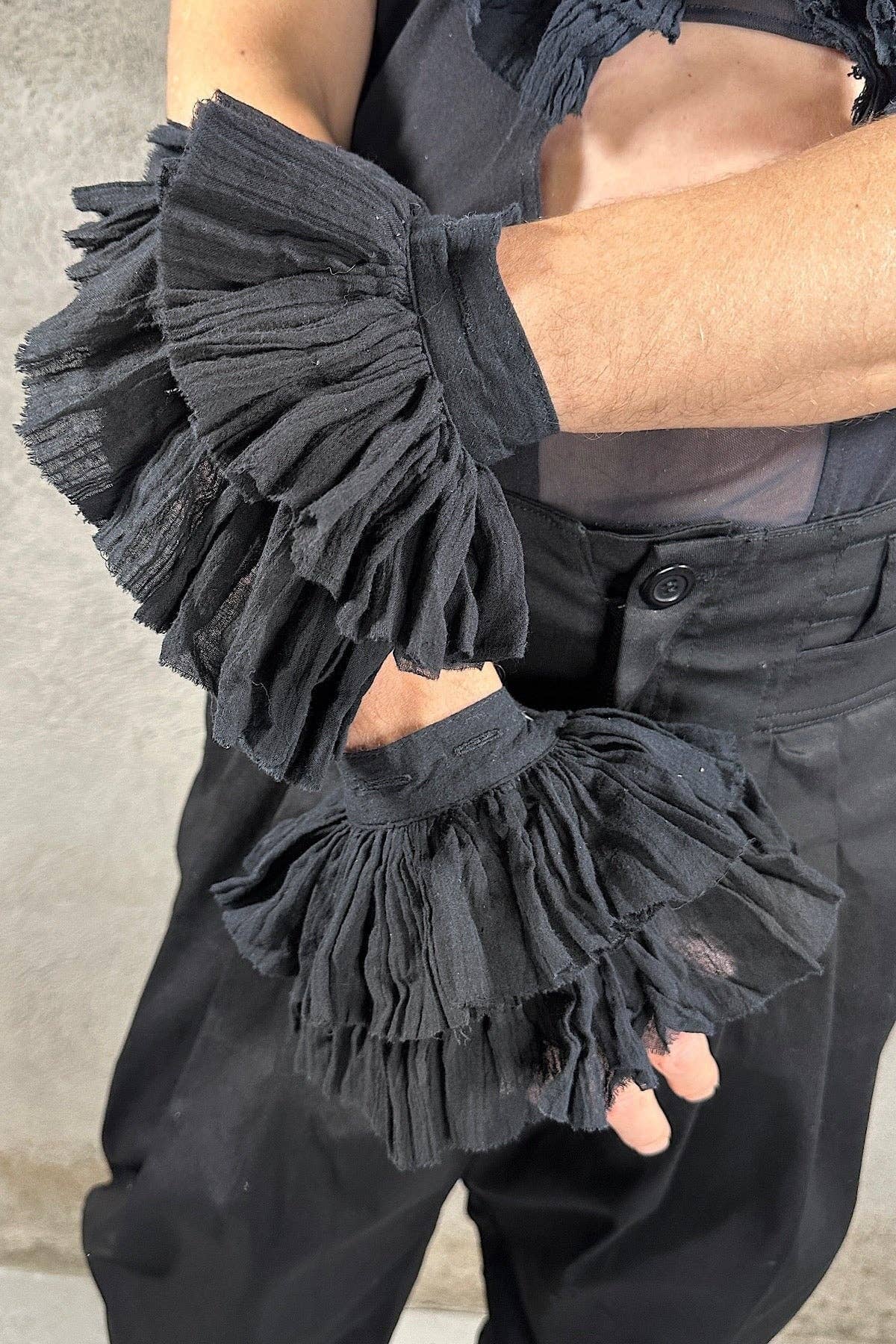 Este sutiã de gaiola é surpreendentemente forte e oferece ampla cobertura. A versão Deluxe tem 6 tiras verticais adicionais (total de 10) para suporte. É feito de um algodão Lycra grosso que segura muito bem. Use-o sozinho num festival ou festa na piscina, ou combine-o com outras peças para um efeito dramático. Especialmente ótimo sob camisolas e vestidos decotados. Estes são feitos um de cada vez com cada tira colocada à mão. * Sutiã com Tiras * Tecido: Preto é 90% algodão / 10% lycra * A modelo está a usar Curve XL e normalmente usa tamanho de sutiã 40F. * Feito em Pequenas Séries por Five and Diamond Tamanhos medidos à volta da parte mais cheia do busto (NÃO TAMANHO DE SUTIÃ):: Nota - estes tamanhos não são os mesmos que tamanhos de roupa. Use as medidas reais. * CURVE LARGE: 38"-44" * CURVE XL: 44"-50" * CURVE XXL: 50"-56" * CURVE XXXL: 56"-62"