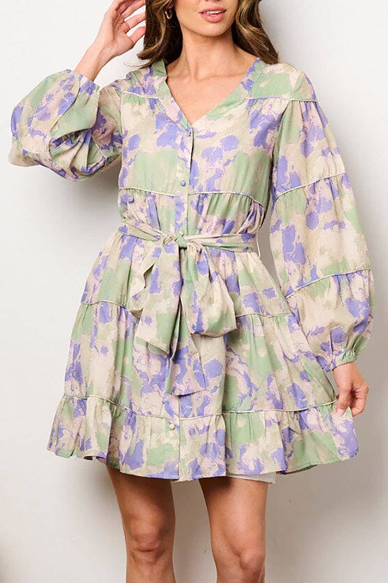 VESTIDO MINI BOLINHAS DOT MANGA COMPRIDA DECOTE V