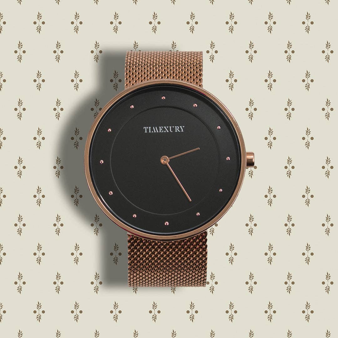 Este relógio é o gêmeo da coleção de mármore. Com seu mostrador preto e ponteiros em ouro rosa, tem um visual muito minimalista. Perfeito para todos os seus eventos. * Agora você pode personalizar seu relógio de outono com nosso pacote de 3 tiras