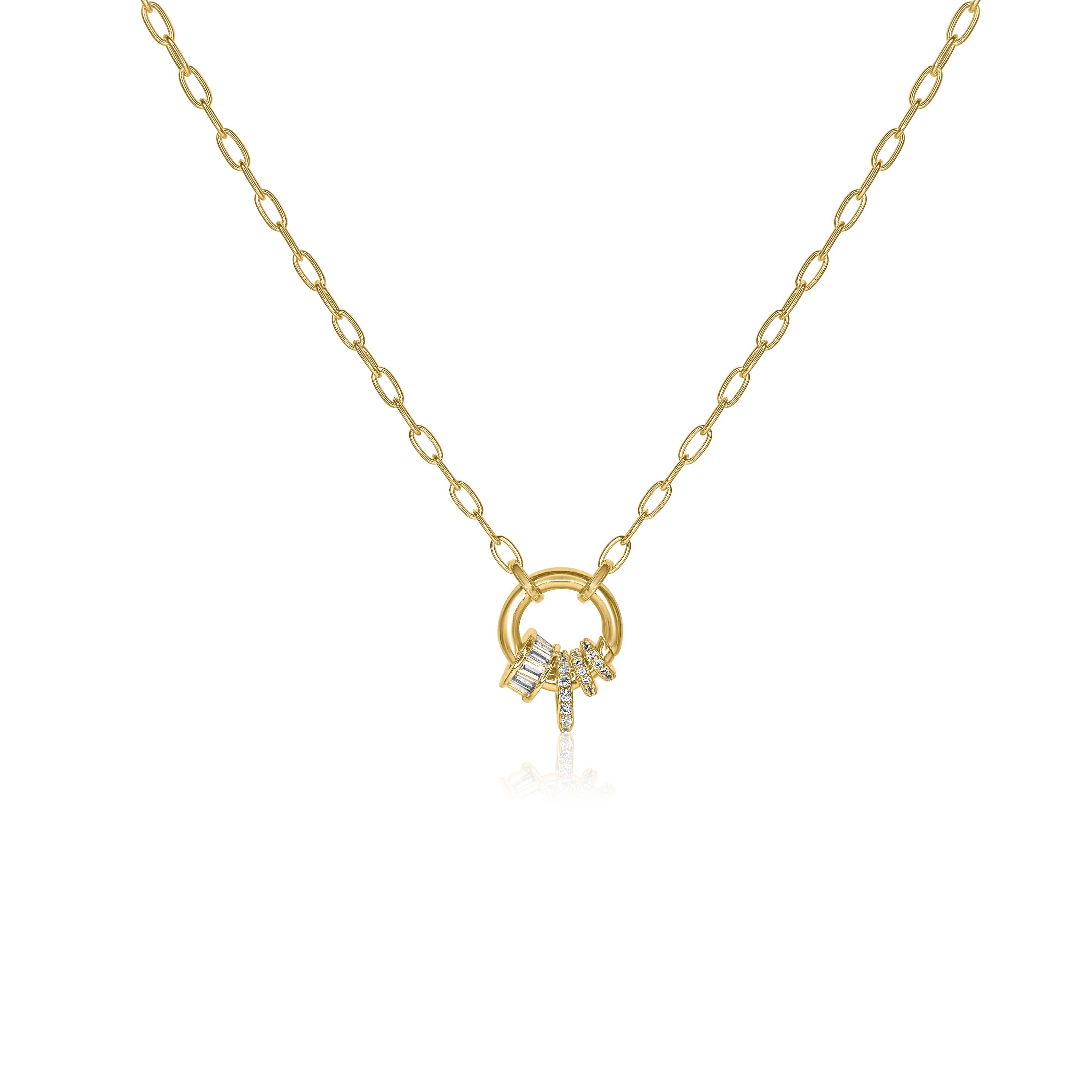 Desfrute da elegância luxuosa da nossa Corrente de Clipes de Papel com Fecho Frontal de Diamante. Esta peça requintada apresenta um deslumbrante fecho frontal em forma de coração de diamante, adicionando um toque de sofisticação a qualquer conjunto. Use-a como gargantilha ou colar de comprimento tradicional para um estilo versátil, mas refinado. Ouro 18k Revestido Zircónias Cúbicas Incolores de Qualidade AAAAA Hipoalergénico | Sem Níquel | Sem Chumbo À prova de água | À prova de suor | Resistente a manchas Tamanhos: 14" 16" 18" e 20"