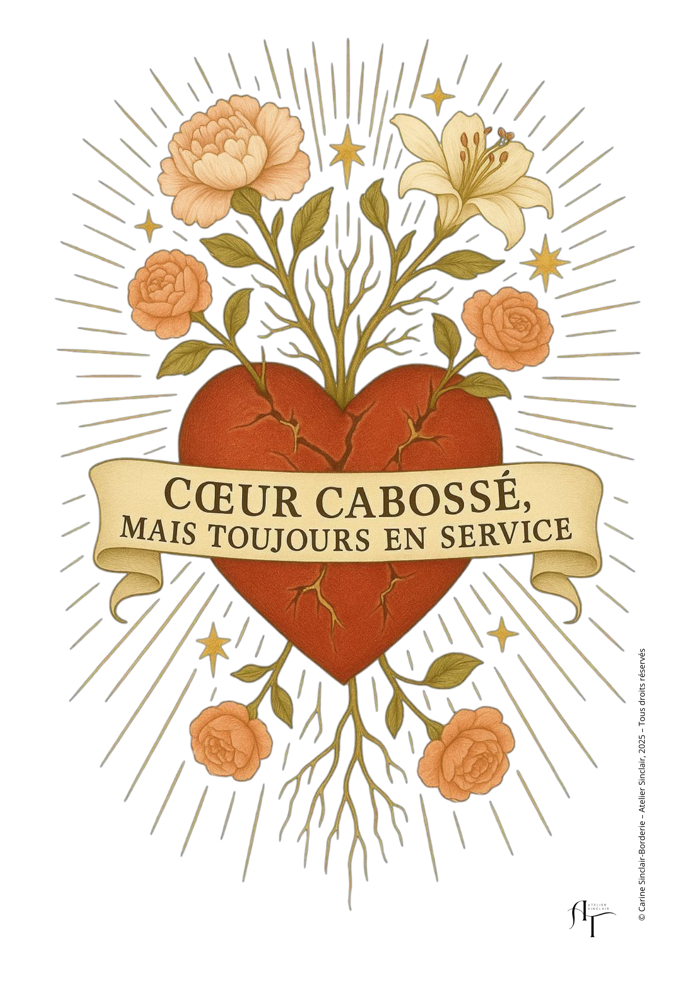 Título: Poster Alimenta os teus sonhos – Formato A4 Descrição: Um coração radiante, adornado com flores delicadas e aureolado de luz, traz uma mensagem inspiradora: “Alimenta os teus sonhos”. Uma ilustração poética e simbólica que convida a acreditar nas suas aspirações e a cultivar o que faz vibrar a alma. Impresso em formato A4 (21 x 29,7 cm) num papel de alta qualidade de 300 g, esta criação combina a intensidade das cores com a elegância do suporte. Perfeito para decorar um interior, oferecer um incentivo simbólico ou manter à vista um lembrete diário das suas ambições. Características: Formato: A4 (21 x 29,7 cm) Papel: 300 g, espesso e refinado Ilustração original © Carine Sinclair Impresso em França Vendido sem moldura