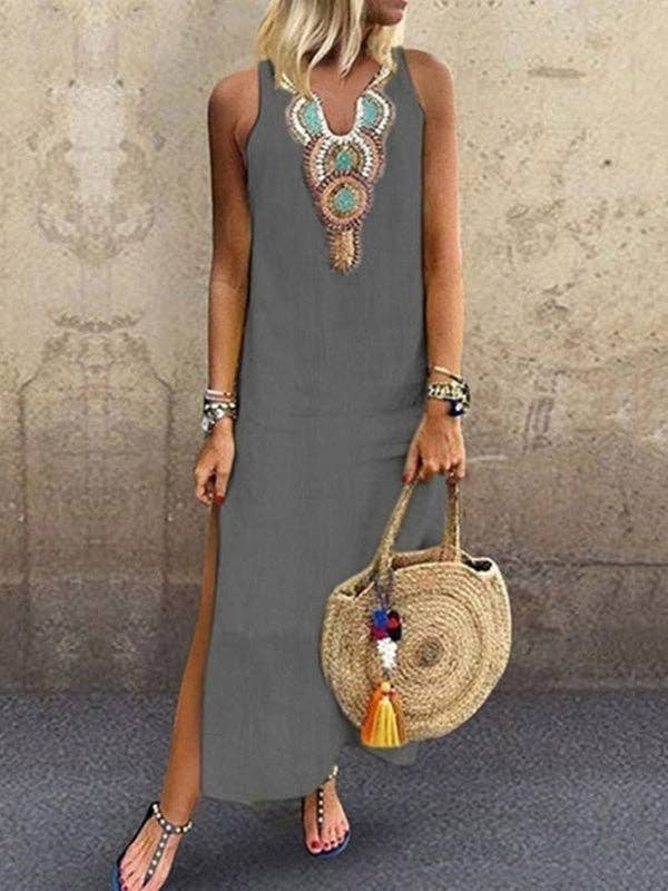 Vestidos Maxi de Ombro Único Assimétricos Justos Sem Mangas Plissados com Estampas