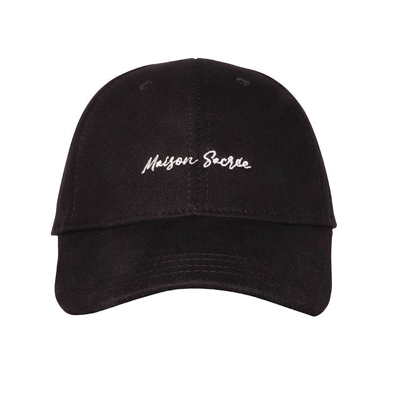 * Tecido 100% algodão. * Bordado à mão Maison Sacrée e Bien Vivre. * Alça traseira ajustável. * Fivela de ajuste prateada.