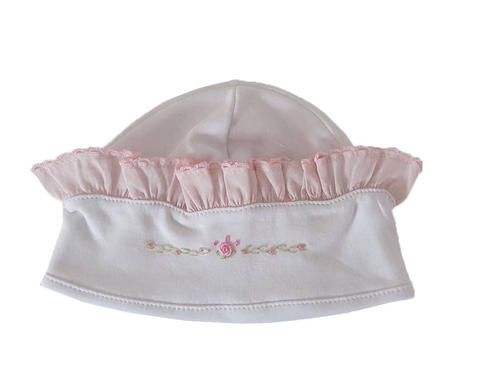 Lindo conversor de algodão pima branco, tinha bordado com rosebuds, babados na frente. Feito com 100% algodão Pima macio. Lavável à máquina. Importado.