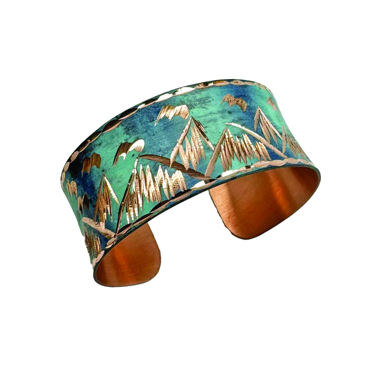 As montanhas estão chamando pulseira de punho gravada em cobre