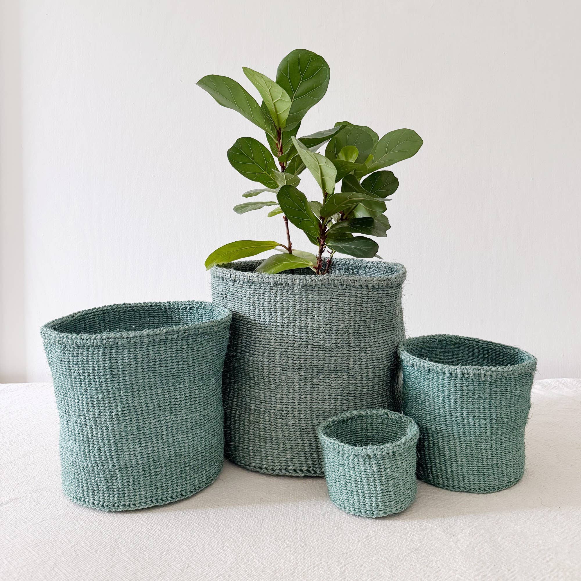 Estes cestos de sisal, tecidos à mão, são feitos por uma cooperativa de tecelagem no sudeste do Quénia. As mulheres tingem à mão as fibras de sisal e tecem-nas nestas belas obras de arte. Estes cestos africanos são ótimos como suportes para plantas, cestos para objetos, cestos para brinquedos, cestos de armazenamento ou para dar vida a um espaço! XXS: 10 cm de largura x 8 cm de altura XS: 15 cm x 15 cm Pequeno: 20 cm x 20 cm Grande: 30 cm x 30 cm XL: 40 cm de largura x 30 cm de altura